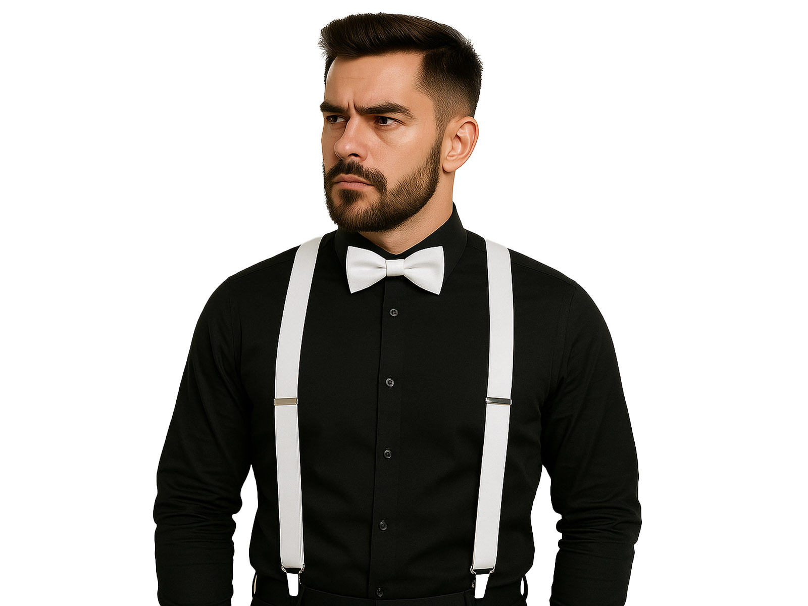 Biały zestaw akcesoriów szelki z dużą muszką - 2 szt.