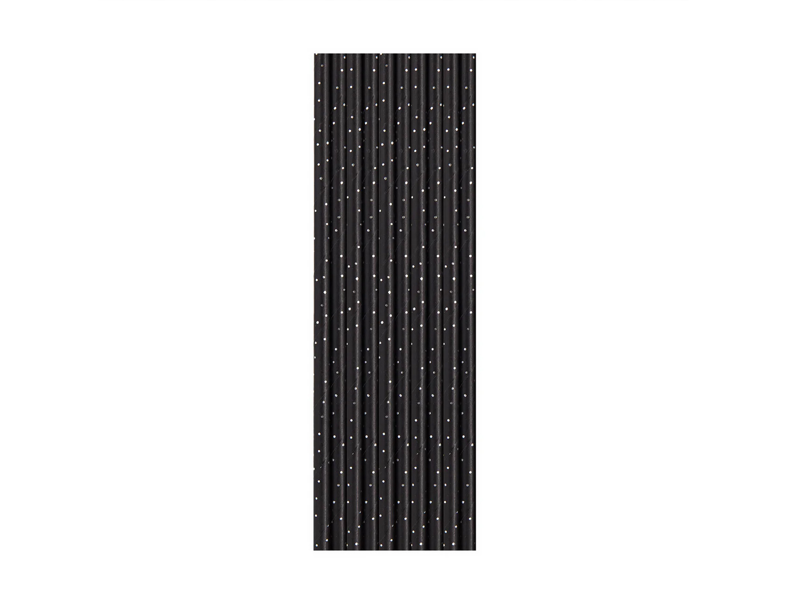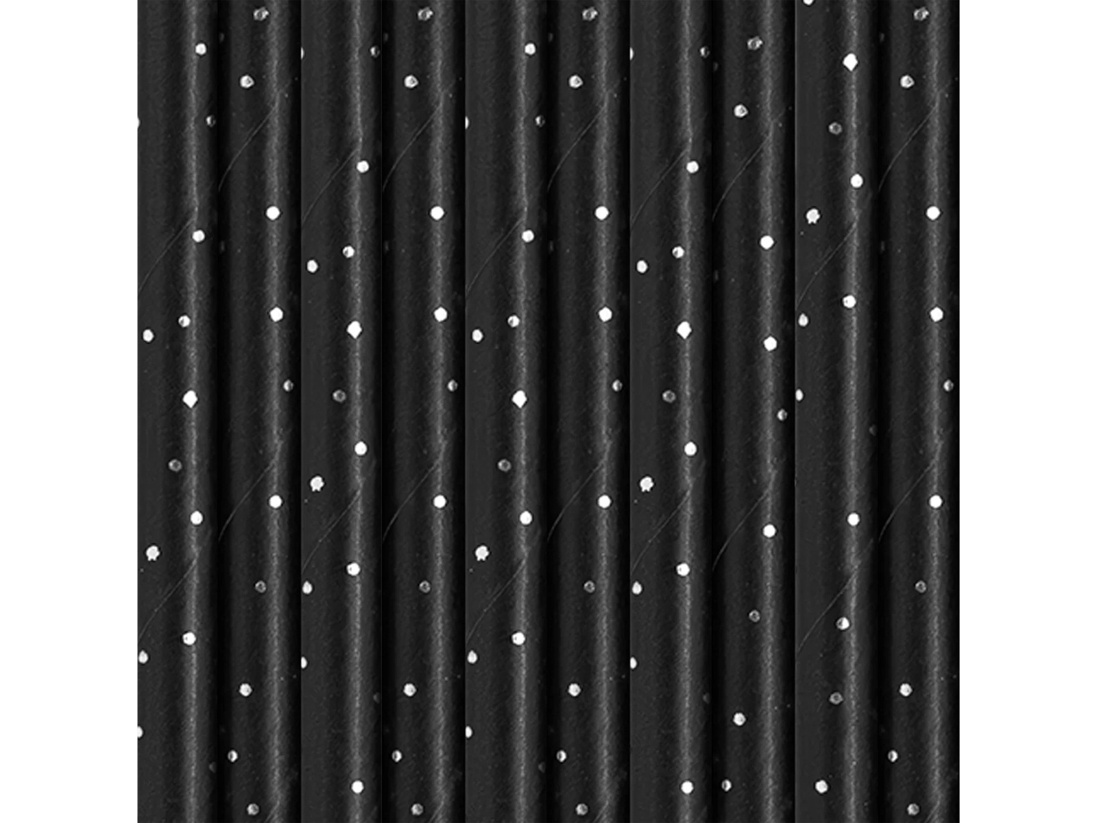 Słomki rurki czarne w srebrne kropki - 10 szt.