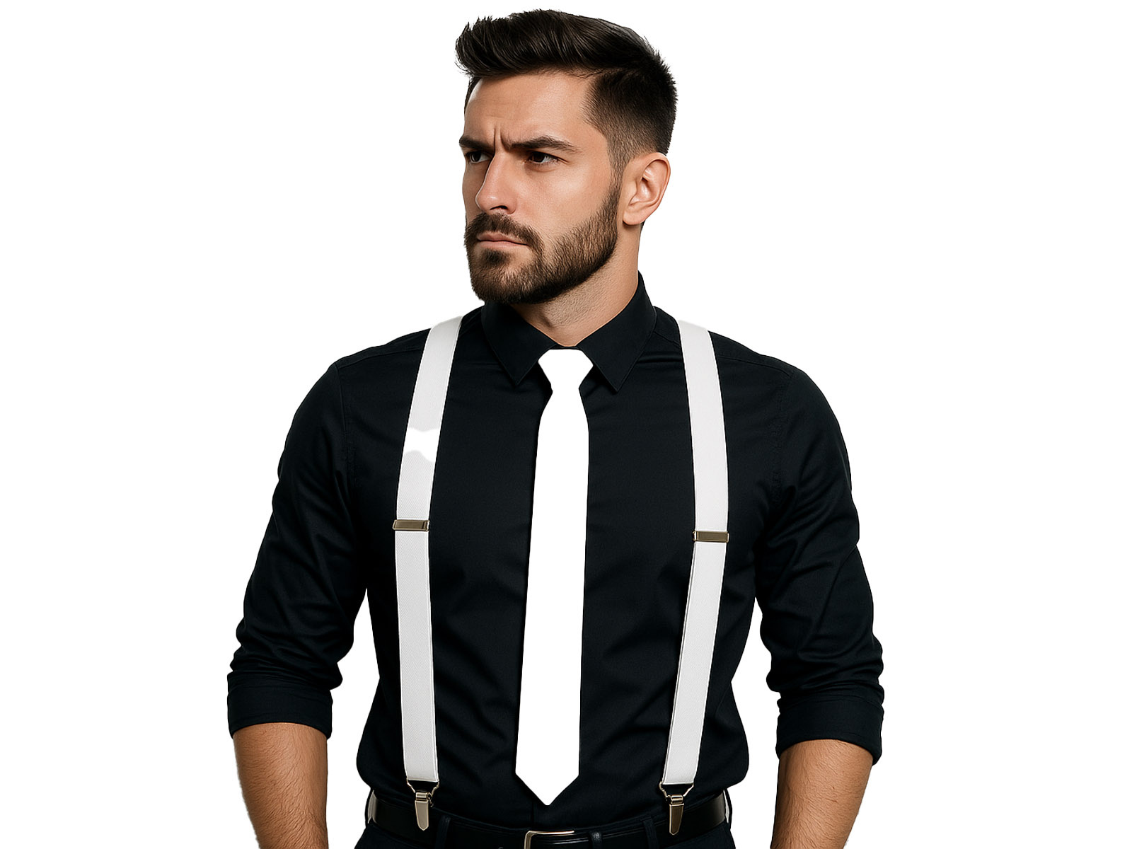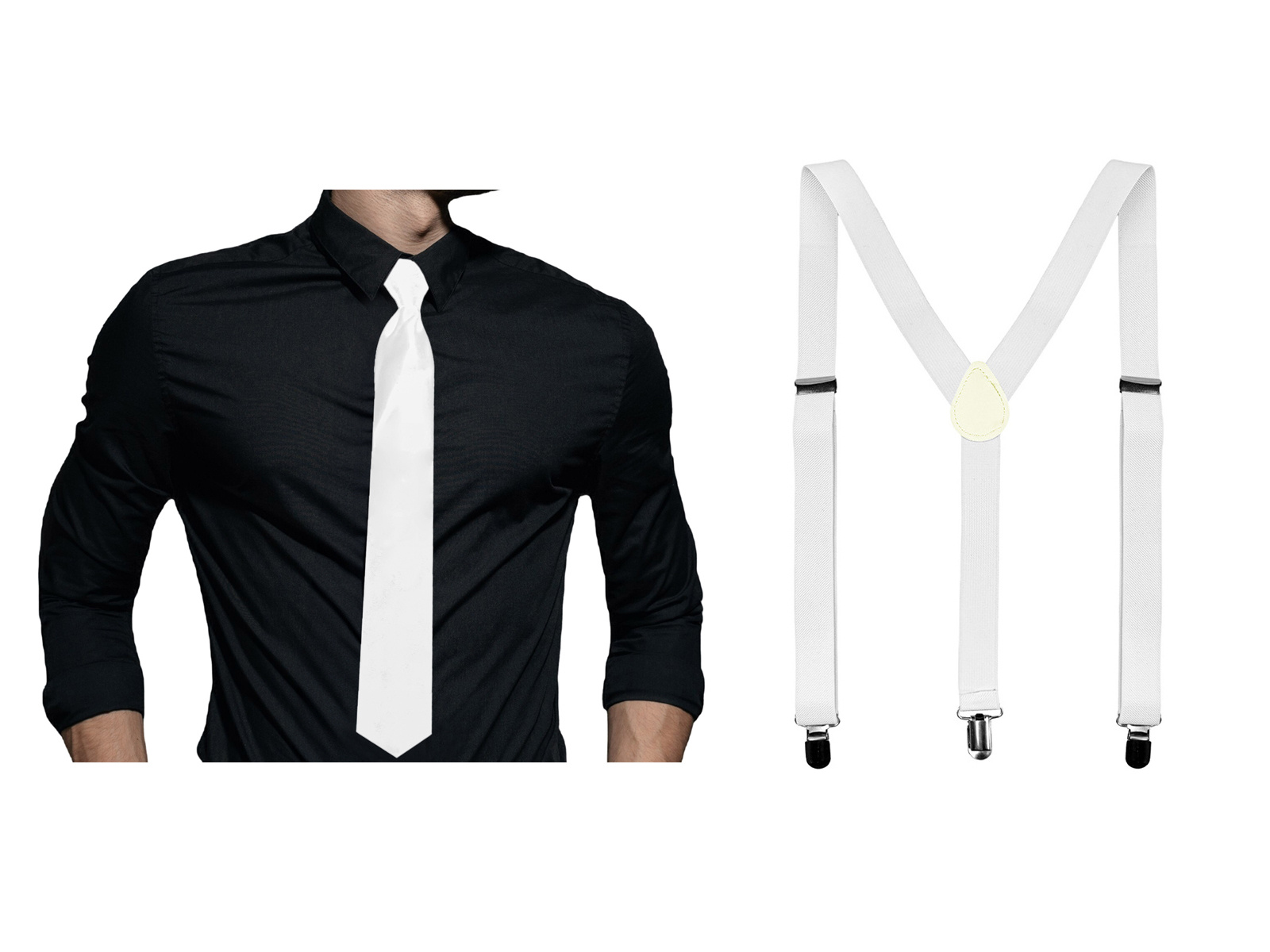 Biały zestaw akcesoriów szelki z długim krawatem - 2 szt.