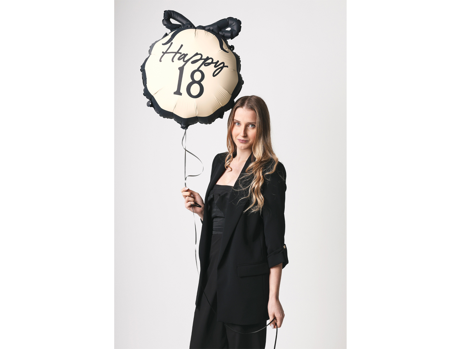 Balon foliowy z kokardą Happy "18" - 47,5 x 45 cm - 1 szt.