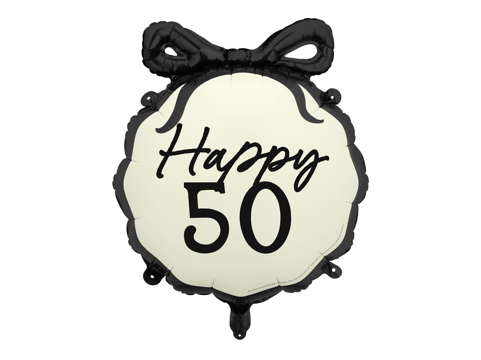 Balon foliowy z kokardą Happy "50" - 47,5 x 45 cm - 1 szt.