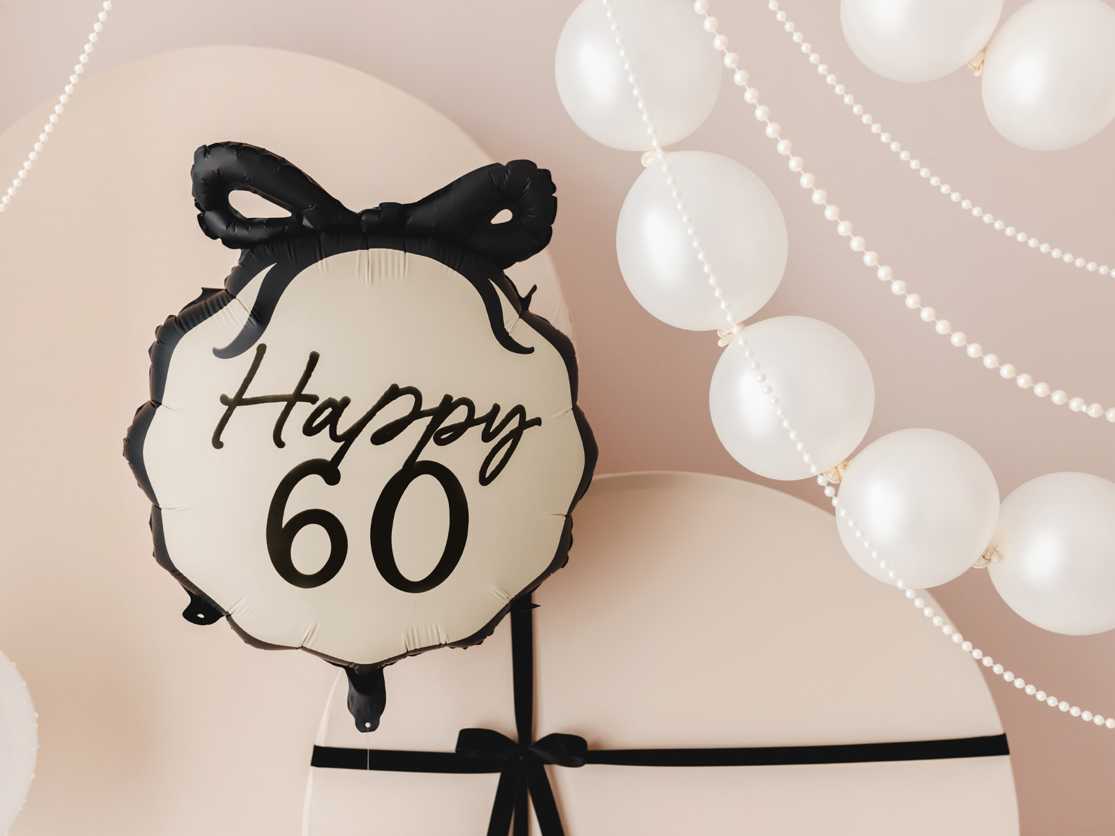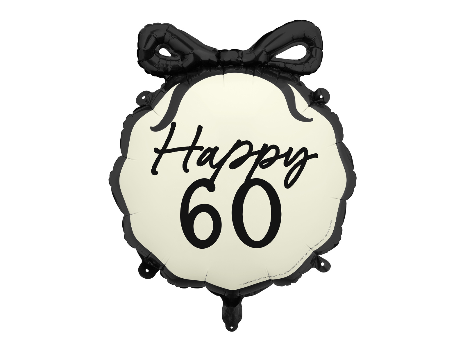 Balon foliowy z kokardą Happy "60" - 47,5 x 45 cm - 1 szt.