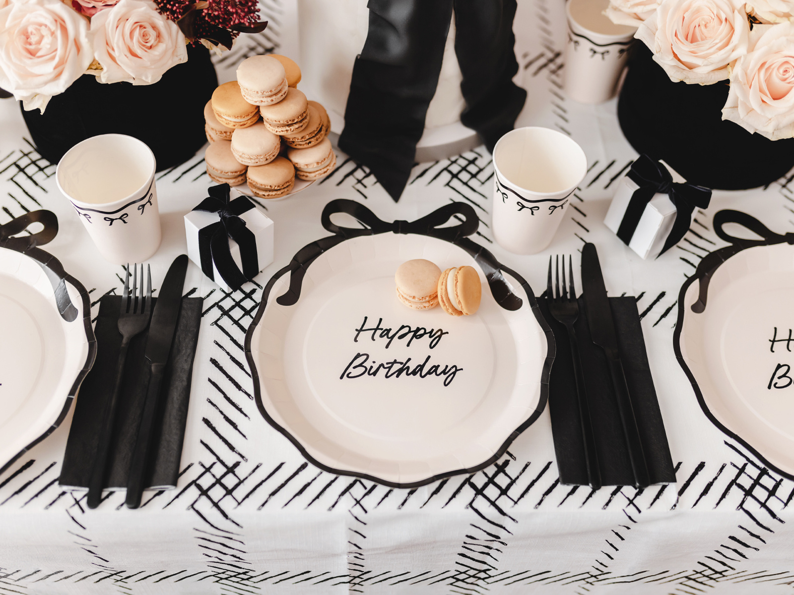Talerzyki papierowe na urodziny Happy Birthday z kokardką - 24 cm - 6 szt.