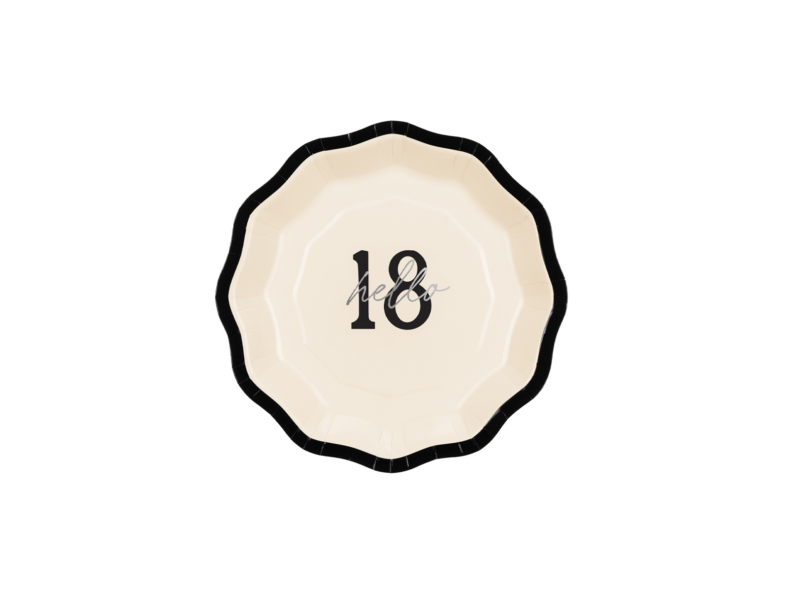 Talerzyki papierowe na urodziny "Hello 18" - 18 cm - 6 szt.