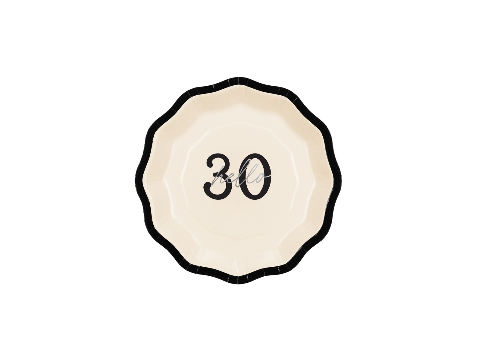 Talerzyki papierowe na urodziny "Hello 30" - 18 cm - 6 szt.
