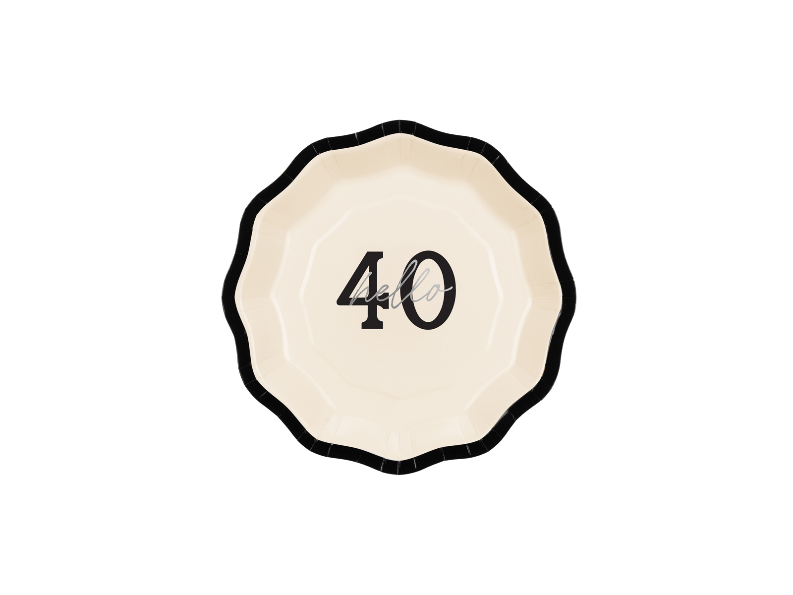 Talerzyki papierowe na urodziny "Hello 40" - 18 cm - 6 szt.
