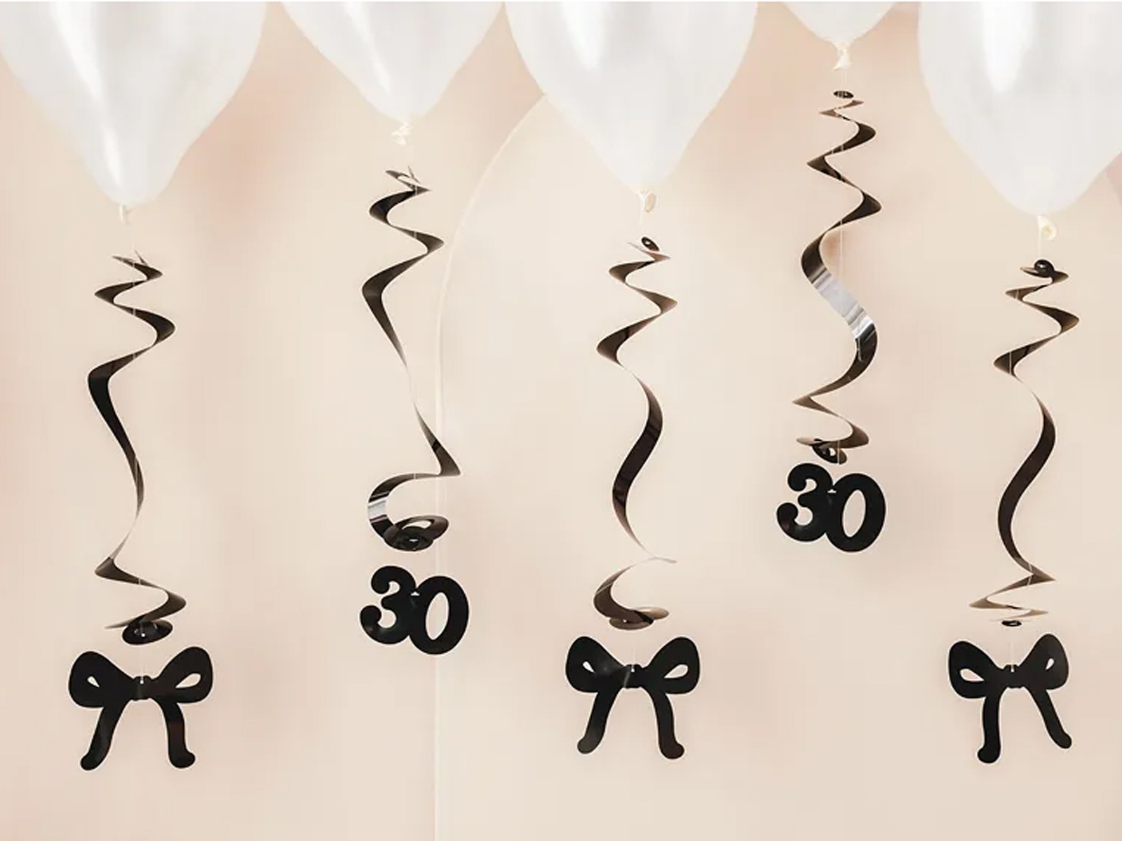 Dekoracja wisząca świderki na trzydziestkę kokardki - 5 szt.
