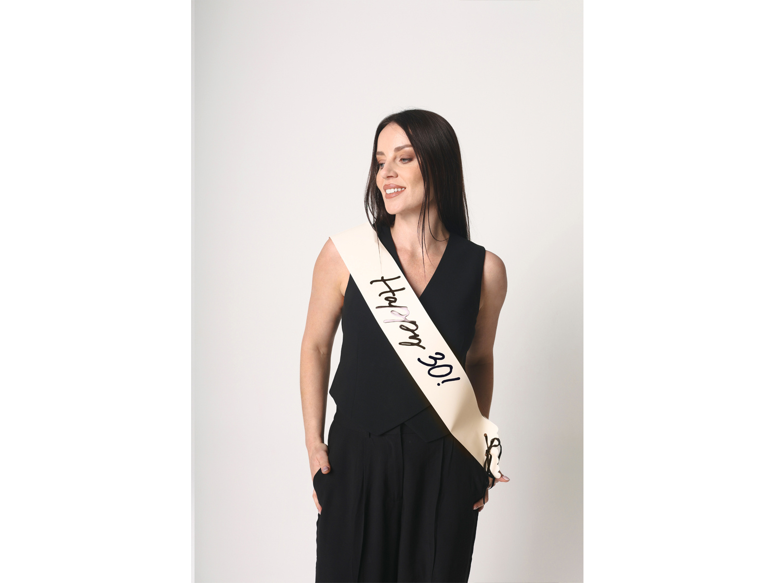 Beżowa szarfa z napisem Happy 30 - 1 szt.