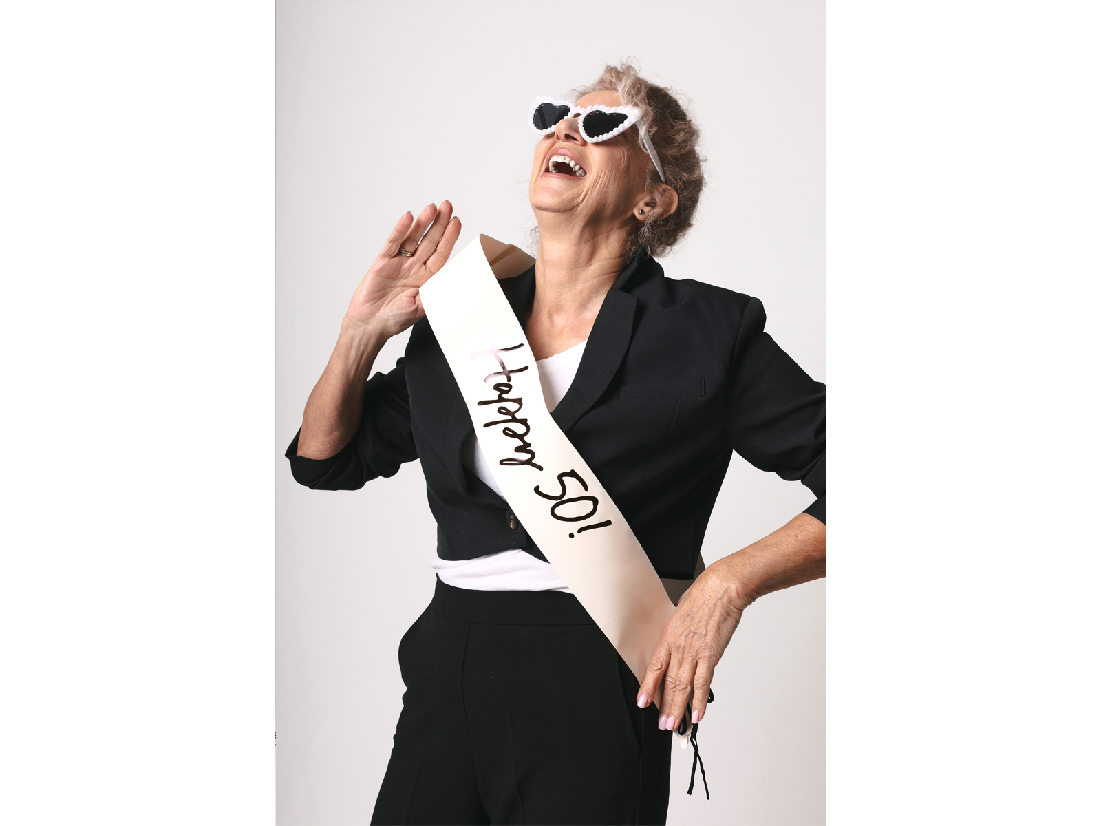 Beżowa szarfa z napisem Happy 50 - 1 szt.
