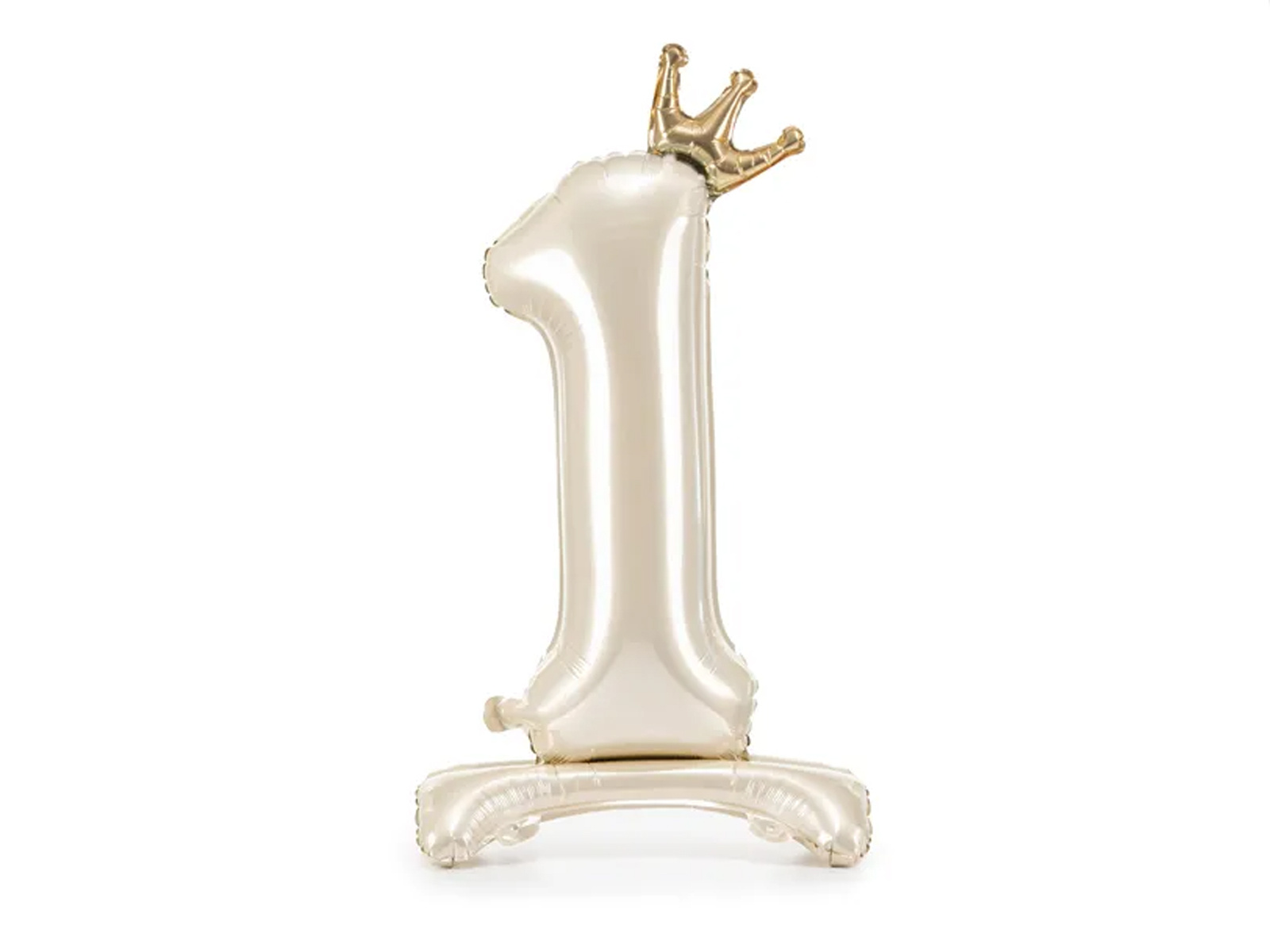Balon foliowy stojący cyfra 1 kremowa z koroną - 84 cm - 1 szt.