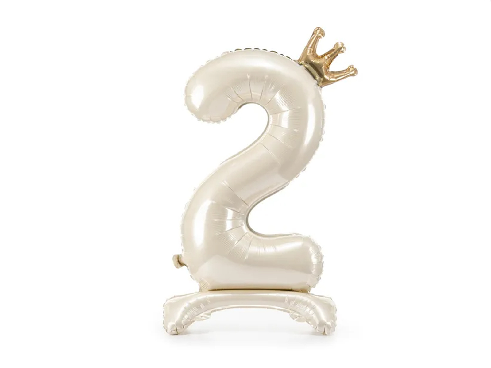 Balon foliowy stojący cyfra 2 kremowa z koroną - 84 cm - 1 szt.