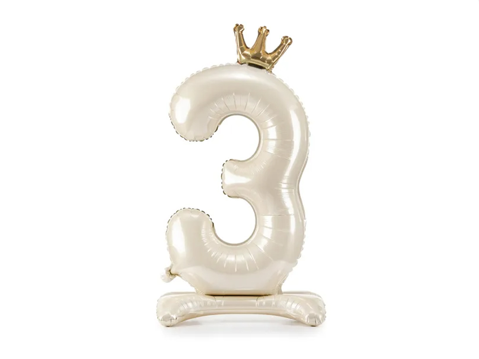 Balon foliowy stojący cyfra 3 kremowa z koroną - 84 cm - 1 szt.