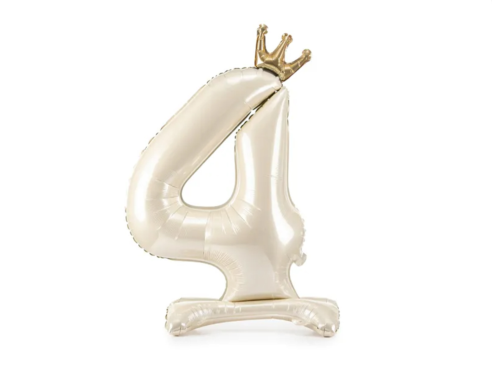Balon foliowy stojący cyfra 4 kremowa z koroną - 84 cm - 1 szt.