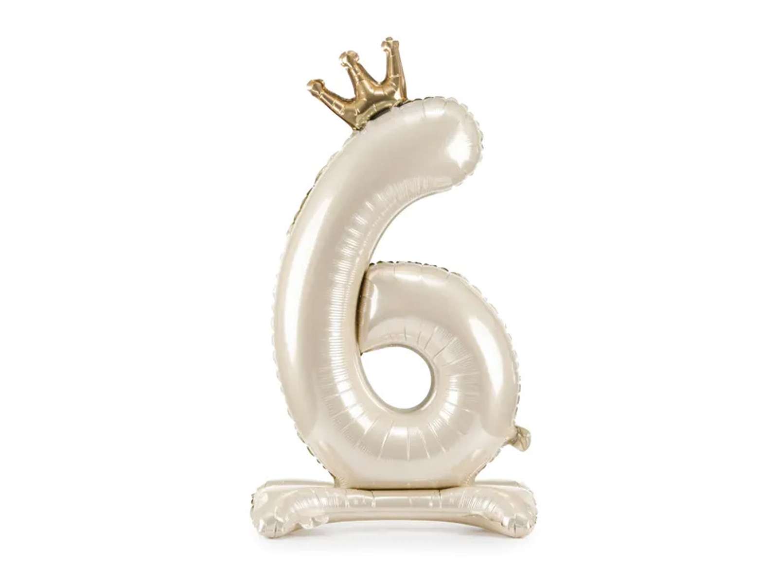 Balon foliowy stojący cyfra 6 kremowa z koroną - 84 cm - 1 szt.
