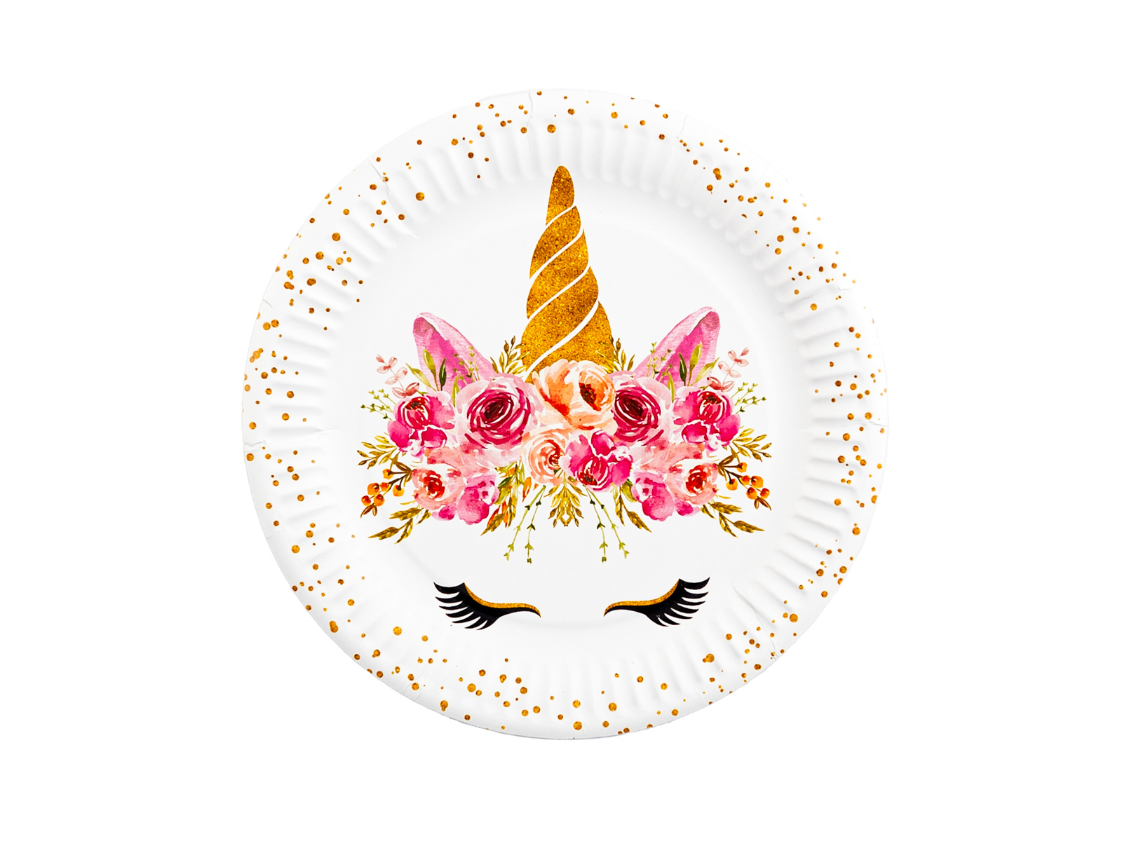 Talerzyki papierowe urodzinowe Jednorożec - 18 cm - 6 szt.