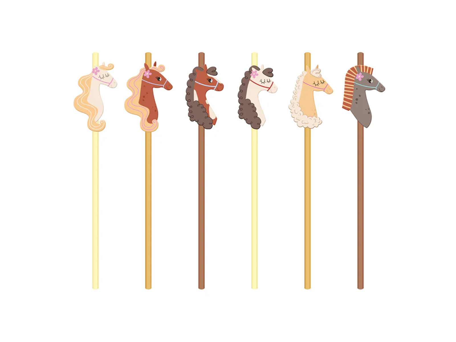 Słomki urodzinowe Koniki - 19,5 cm - 6 szt.