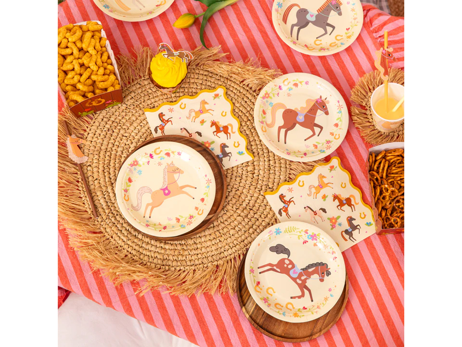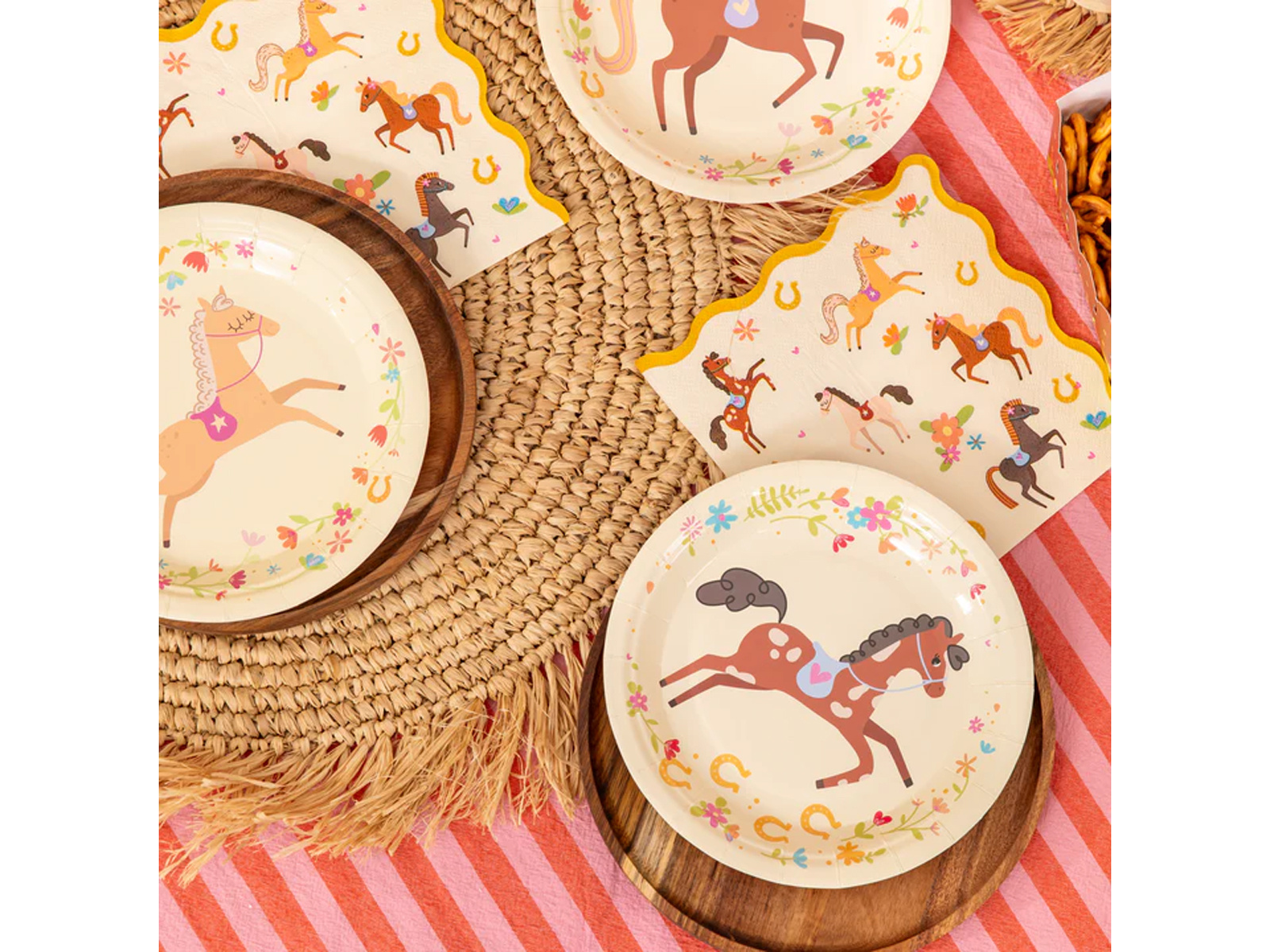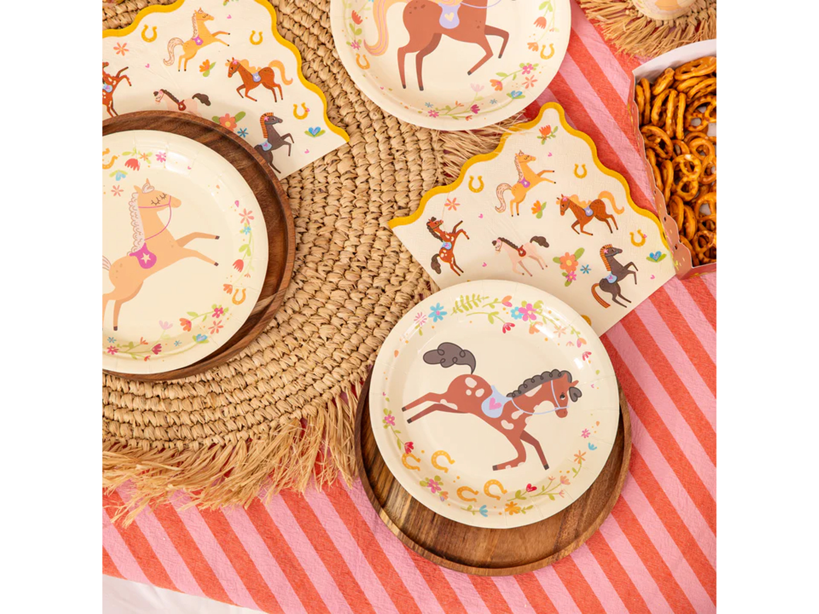 Te serwetki są idealne nie tylko na urodziny, ale również mogą służyć podczas pikników czy innych rodzinnych spotkań. Są wspaniałym uzupełnieniem tematycznej zastawy 'Koniki', co pozwala stworzyć spójną i przyjemną atmosferę dla małych wielbicieli tych ujmujących zwierząt.
