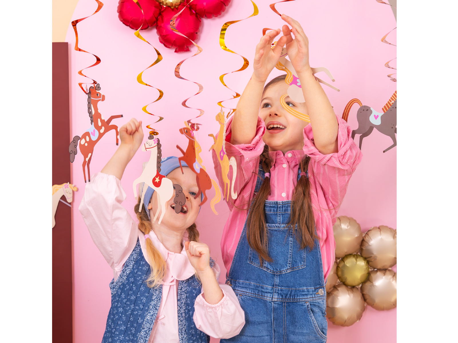 Zestaw doskonale komponuje się z innymi elementami z serii Koniki, tworząc spójną i tematyczną aranżację. Świderki mogą być używane podczas dziecięcych urodzin, ale równie dobrze sprawdzą się jako dekoracja na Halloween czy inne specjalne okazje. Dzięki swojej uniwersalności świderki z konikami ozdobią zarówno salę urodzinową, jak i domowe wnętrze, nadając mu przytulnego i bajkowego charakteru.
