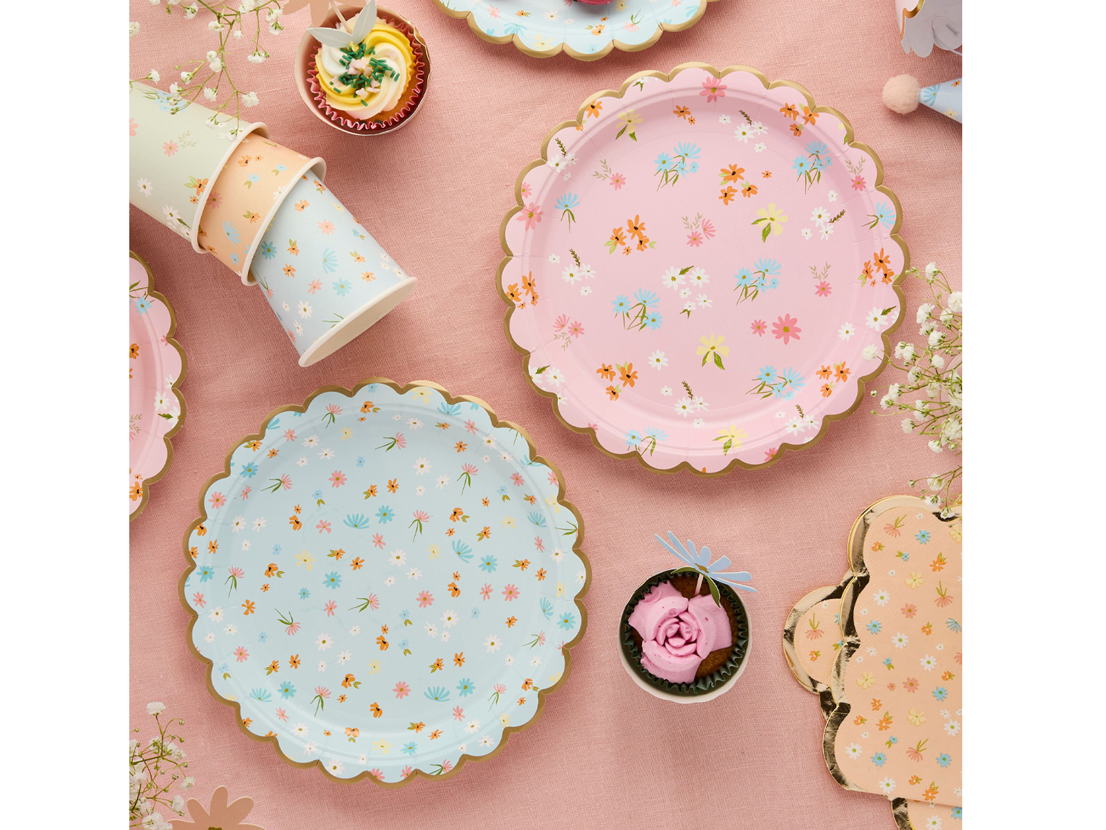 Talerzyki papierowe w Kwiatki - 23 cm - 8 szt.