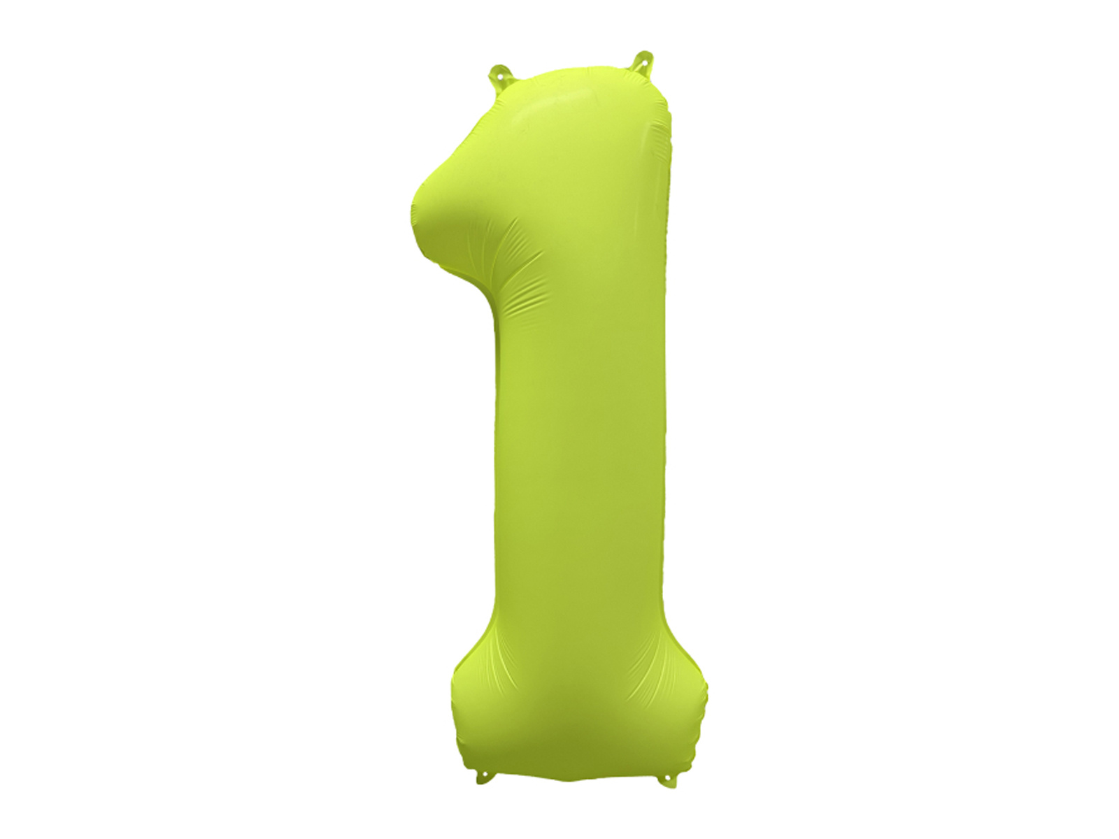 Balon foliowy cyfra 1 neonowy żółty - 86 cm - 1 szt.
