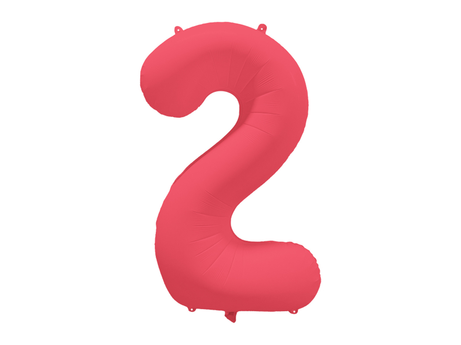 Balon foliowy cyfra 2 neonowy czerwony - 86 cm - 1 szt.