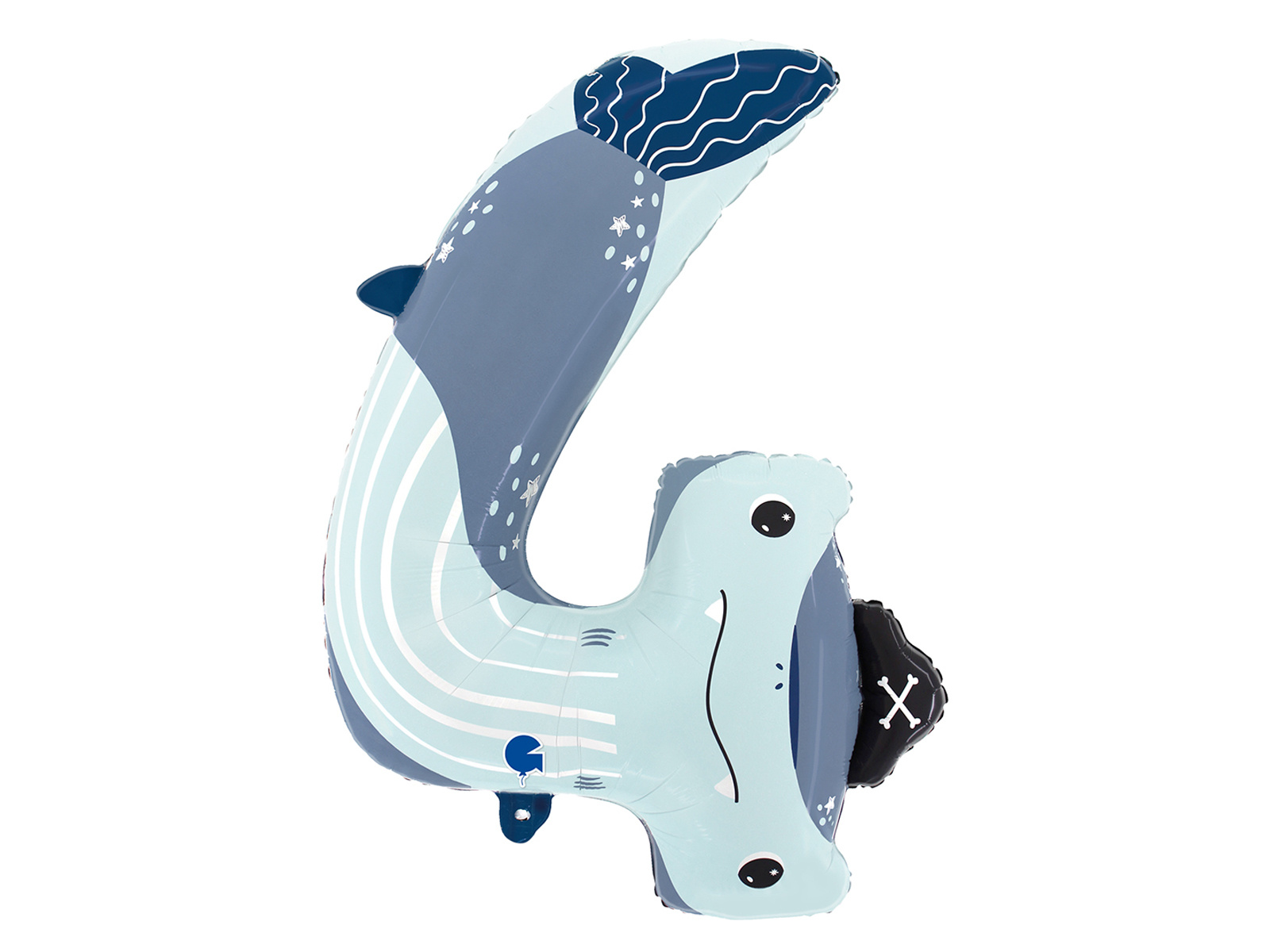 Balon foliowy cyfra 4 Rekin - 62x88 cm - 1 szt.