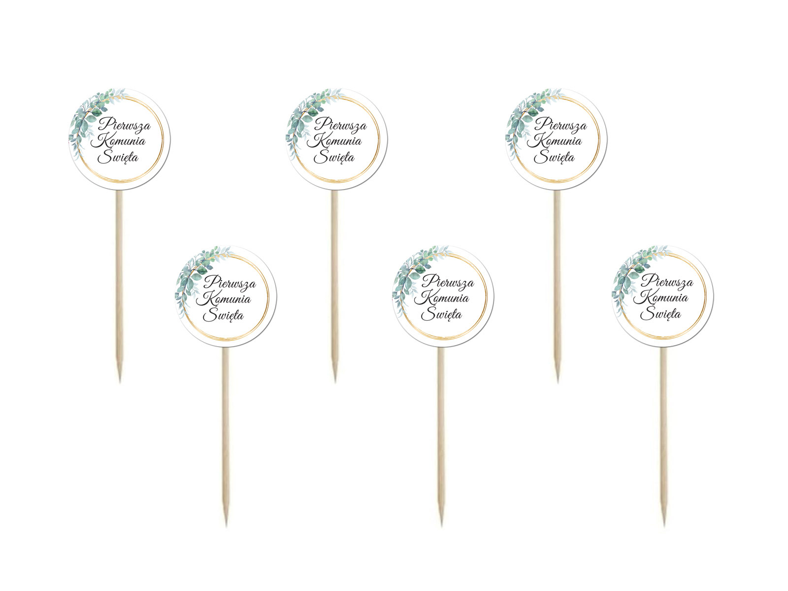 Dekoruj wyjątkowość błogosławieństwa Pierwszej Komunii Świętej z naszymi efektownymi pikami. Ozdoba wykonana w delikatnym motywie eukaliptusa, który doda elegancki urok komunijnemu stołowi. Każdy pikier zawiera napis "Pierwsza Komunia Święta", podkreślając ważność tego święta.