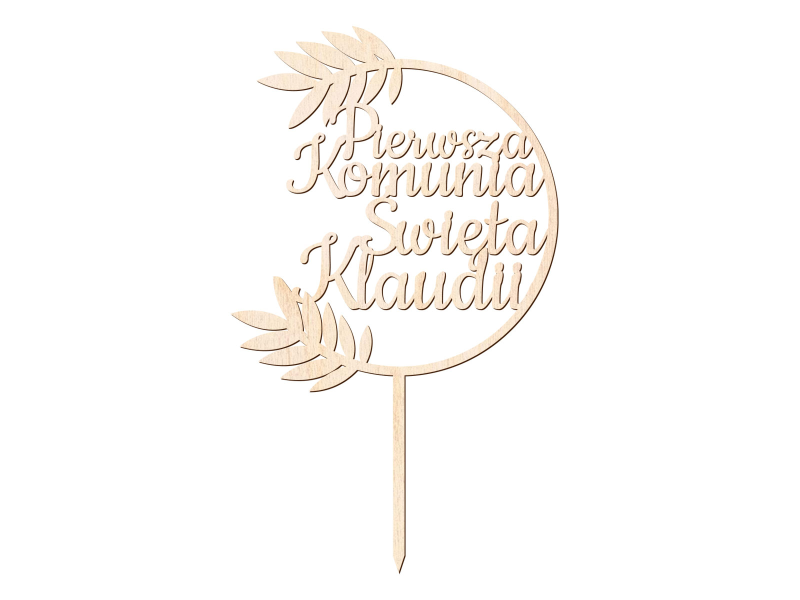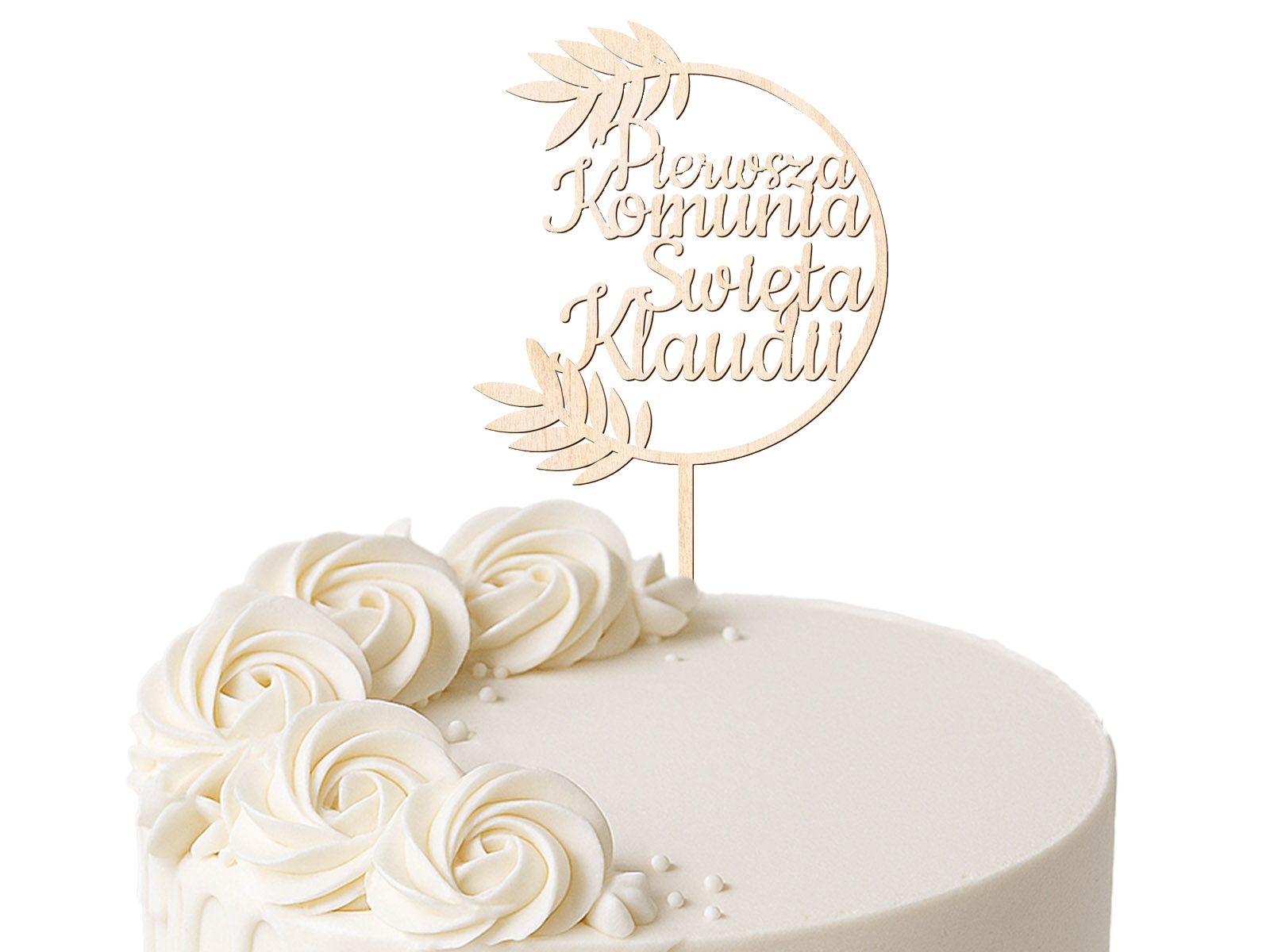 Topper drewniany personalizowany na tort I Komunia Święta - 1 szt.