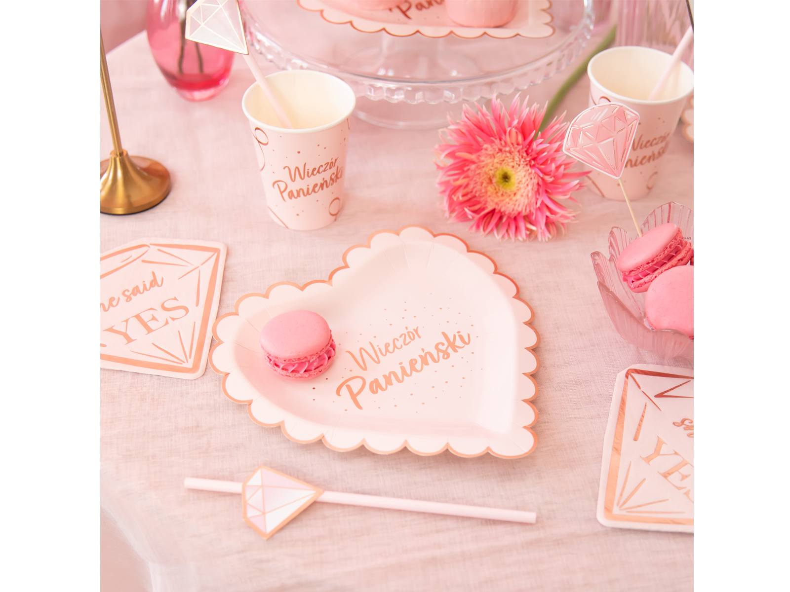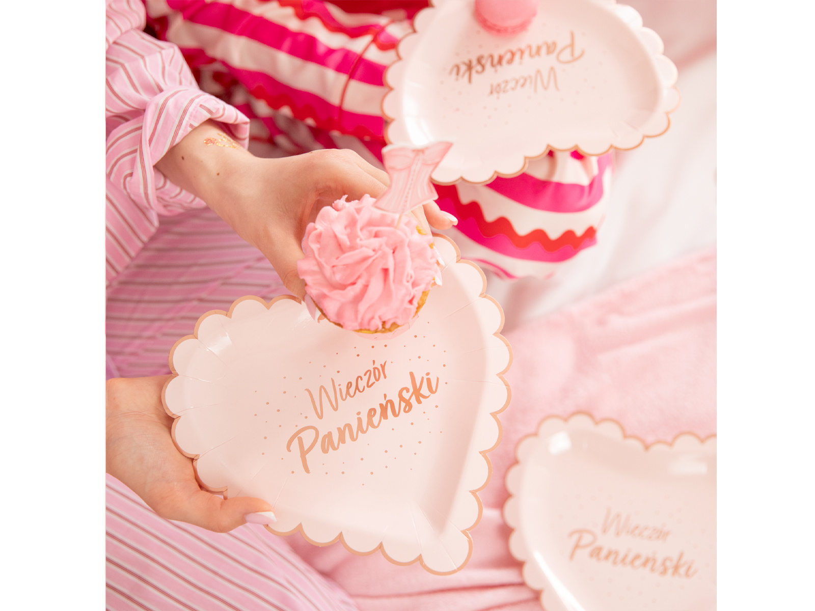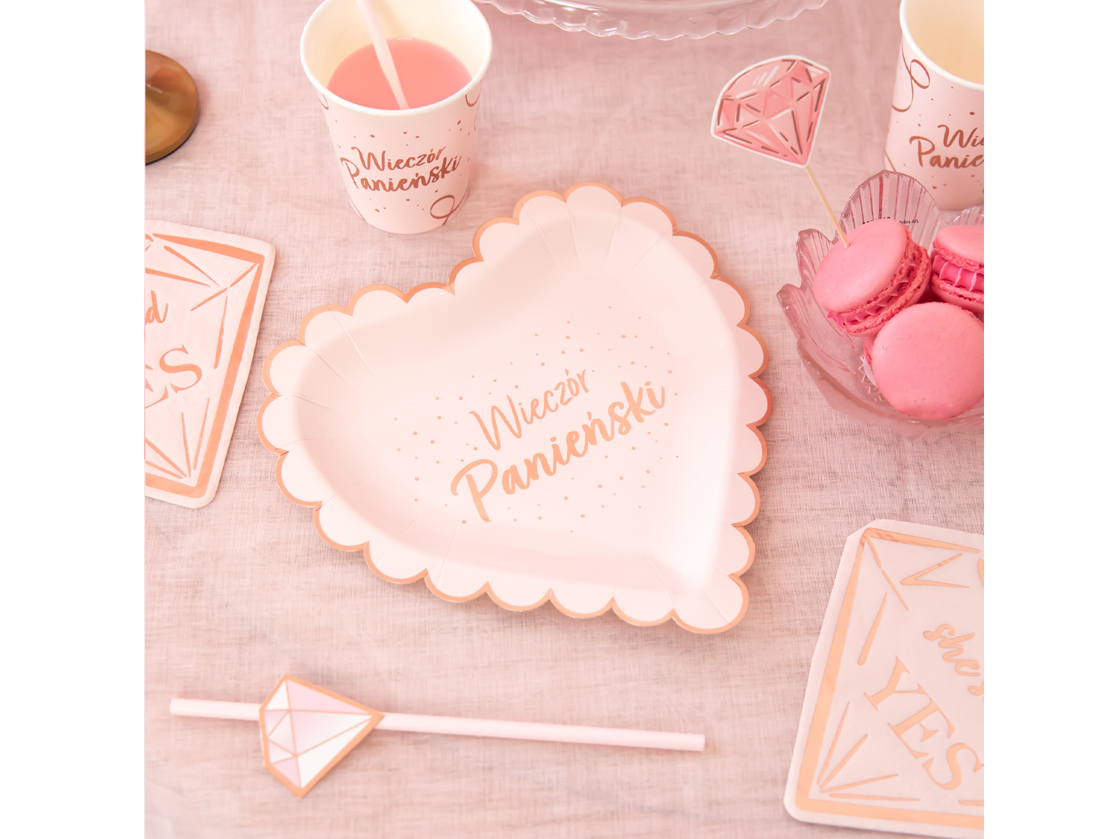 Talerzyki papierowe na Wieczór Panieński Serce - 23 cm - 6 szt.