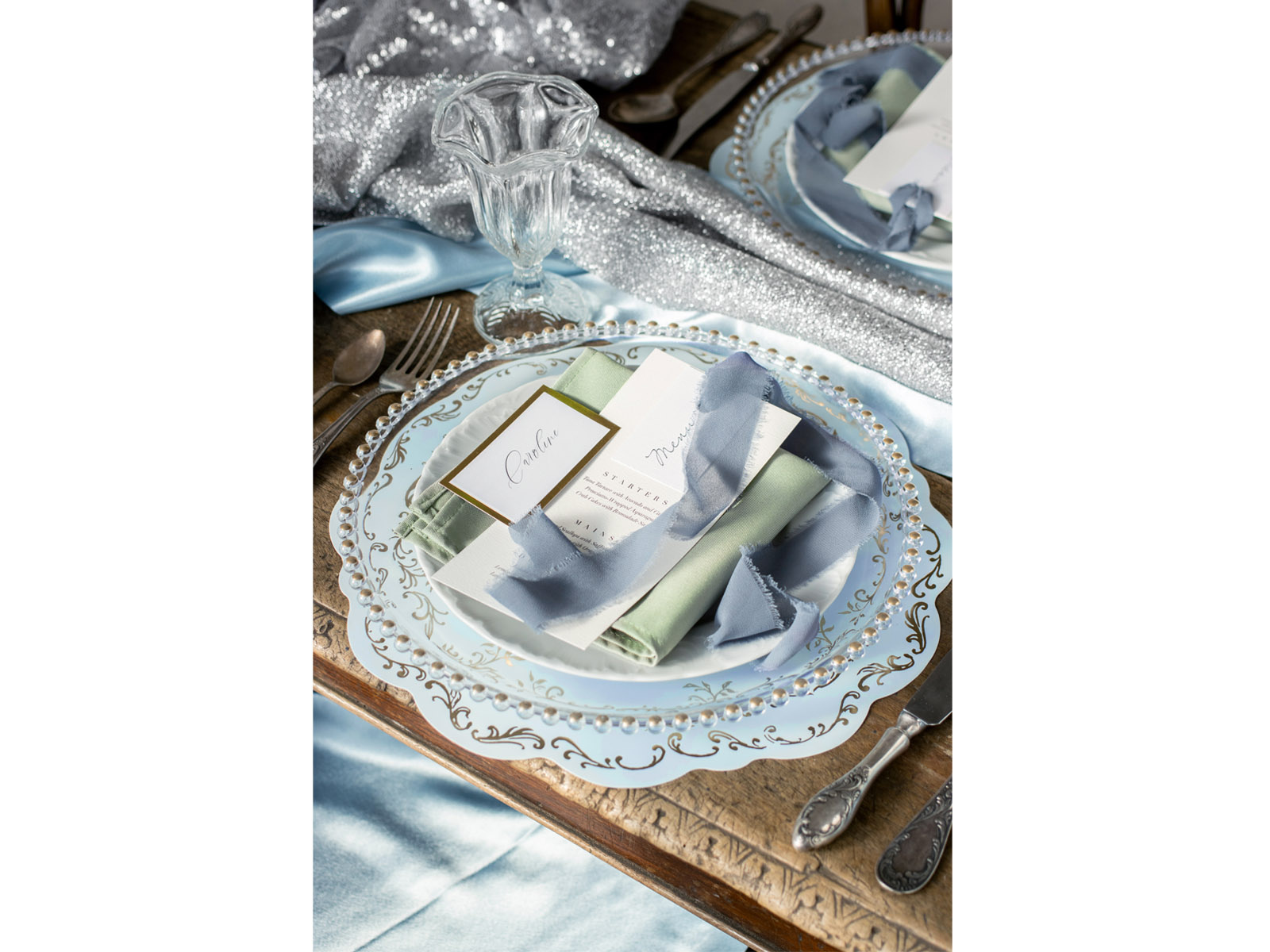 Podkładki pod talerze złote listki - błękitny - 35,5 cm - 6 szt.