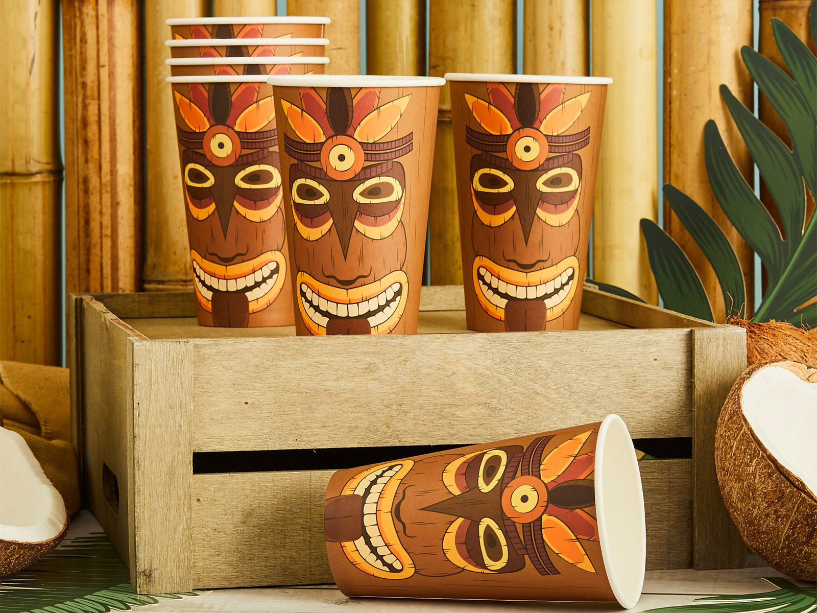 Przenieś swoich gości w egzotyczną podróż bez wychodzenia z domu dzięki naszym papierowym kubeczkom "Tropikalny Posąg". Wzór inspirowany tradycyjnymi drewnianymi rzeźbami totemów, doskonale wpisze się w atmosferę hawajskiej zabawy. Kubeczki te są idealnym dodatkiem do każdej imprezy z motywem tropikalnym, urodzin czy tematycznej hawajskiej fiesty.