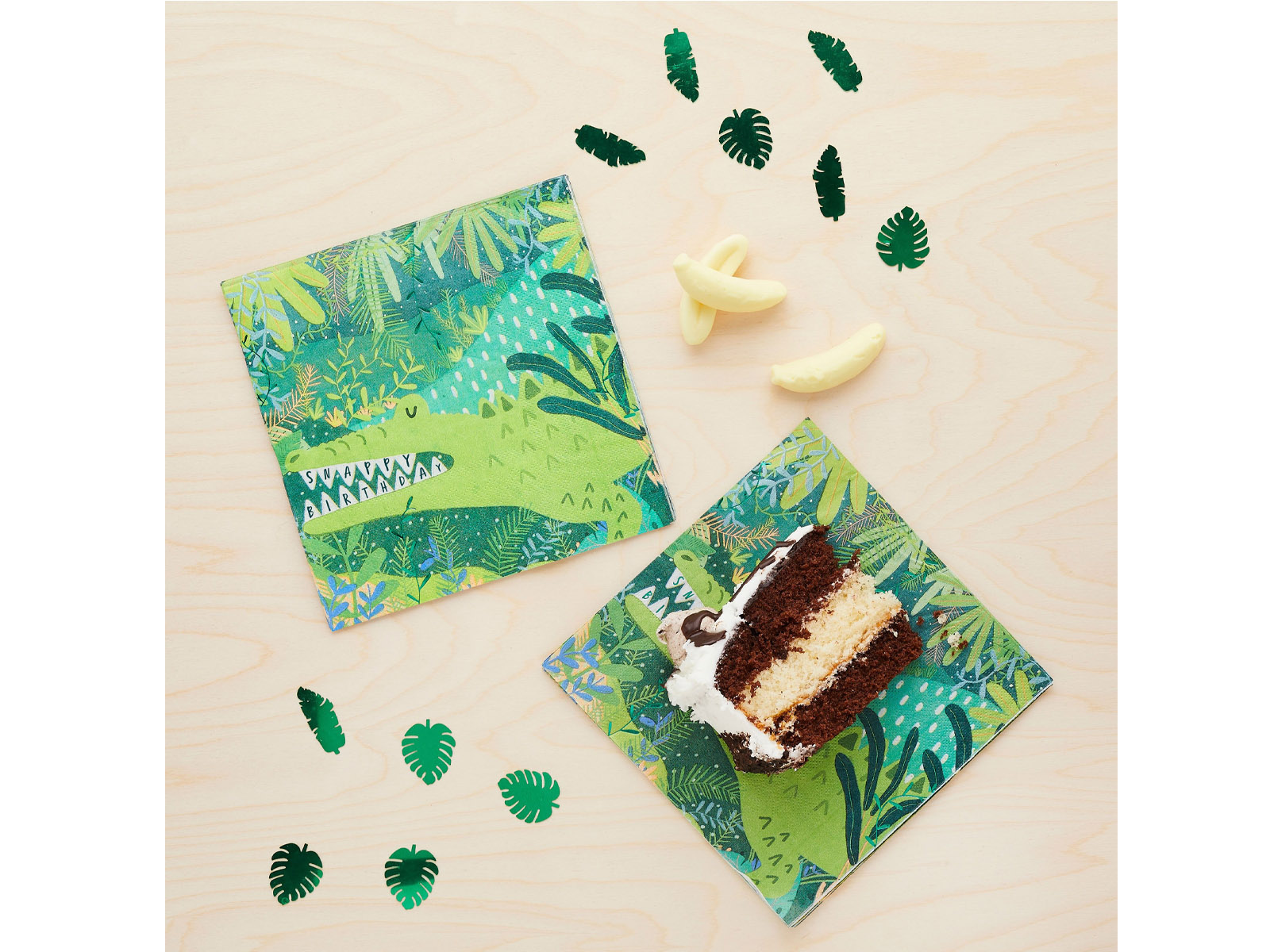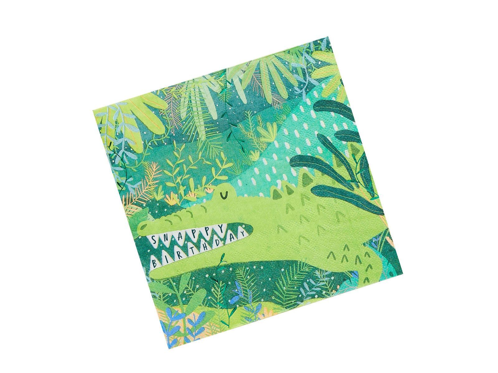 Przygotuj niezapomniane przyjęcie dla swojego dziecka z naszymi uroczymi serwetkami "Krokodylek". Każda serwetka zdobiona jest zabawnym motywem krokodyla, co sprawia, że są one idealnym dodatkiem do każdej imprezy z tematyką safari czy zwierzęcą. Pasują świetnie do zestawów z serii Snappy Birthday, tworząc spójny i atrakcyjny wystrój stołu.