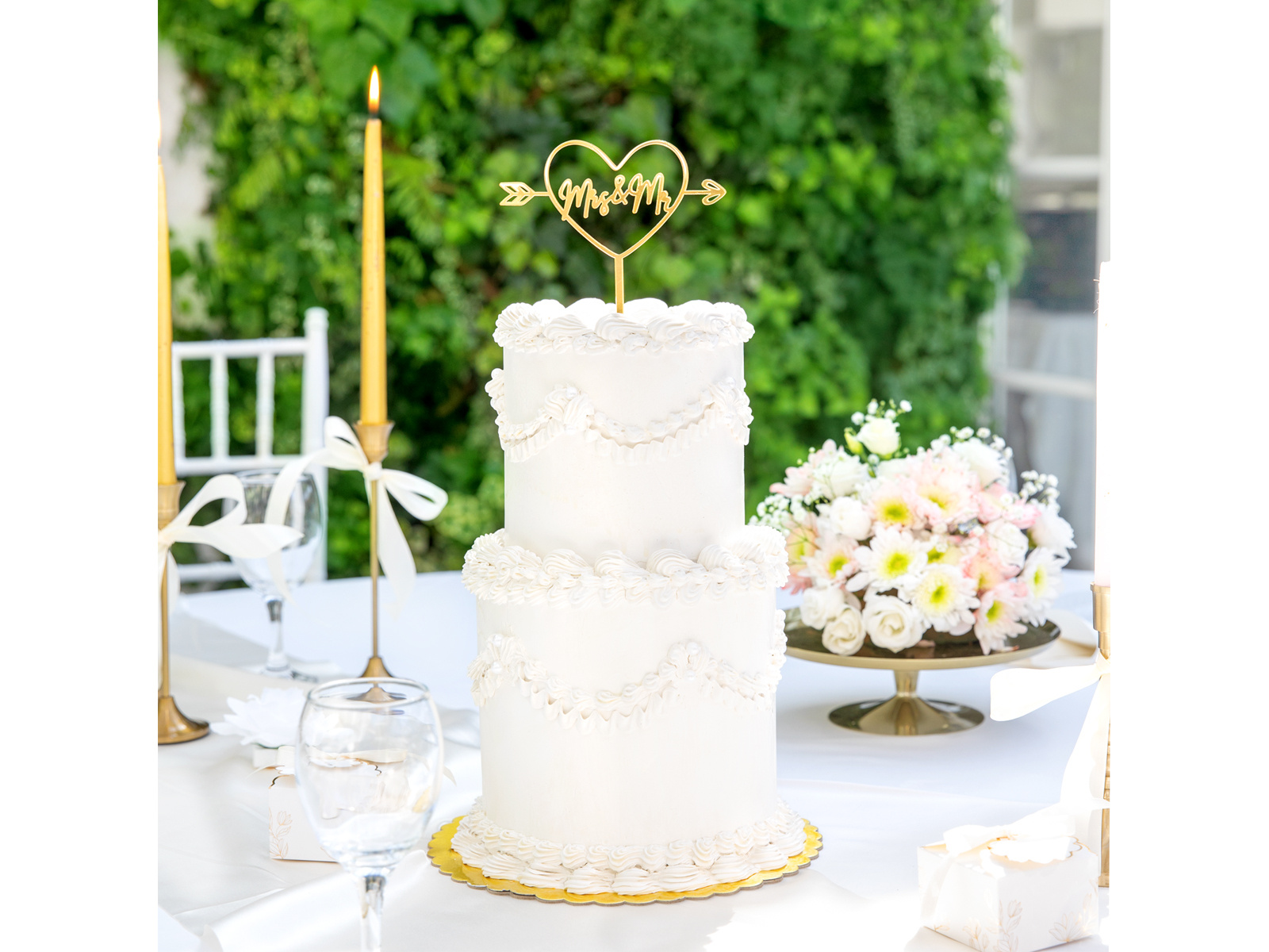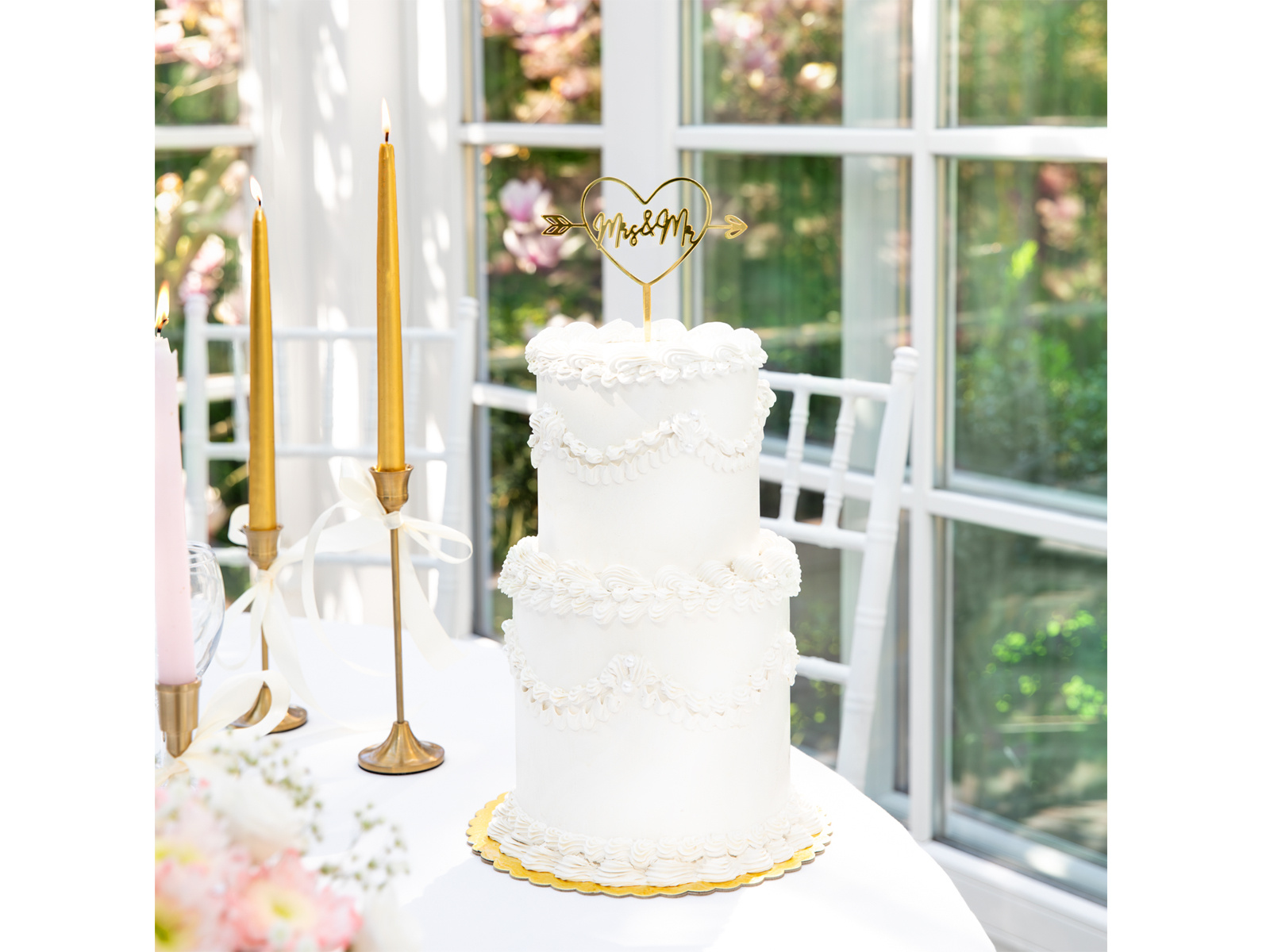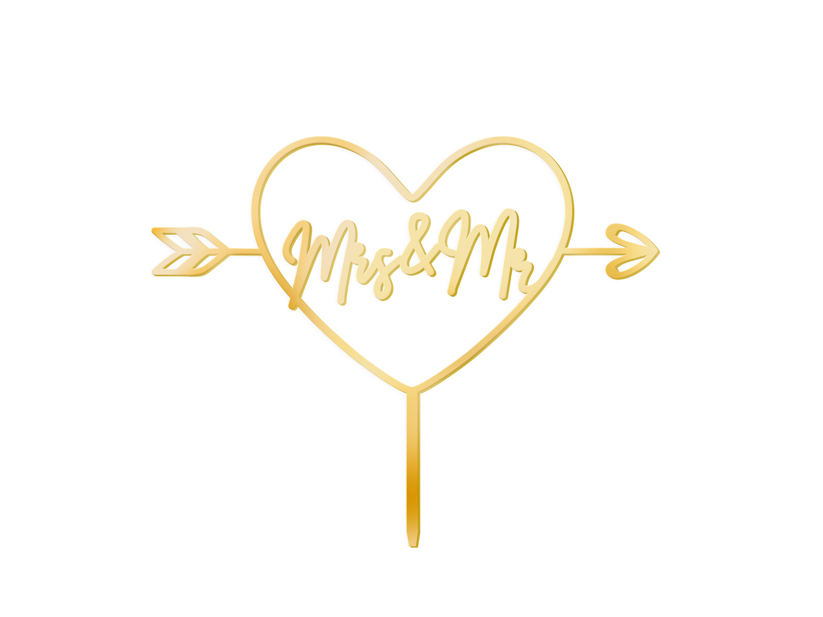 Topper z lustrzanej pleksi złoty na tort Mrs & Mr - 1 szt.