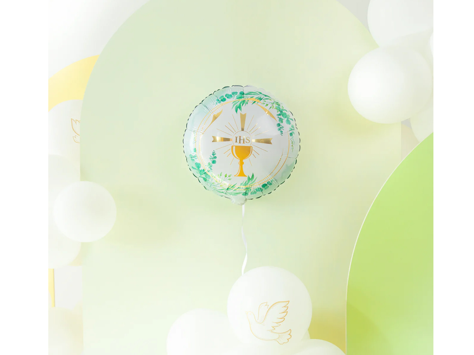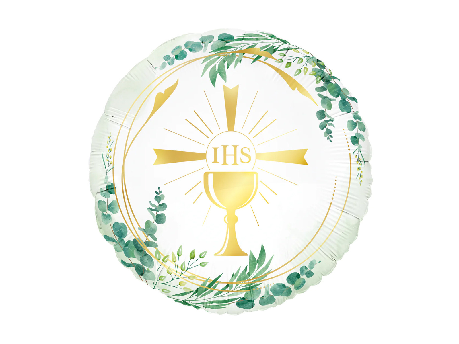 Balon foliowy Kielich IHS z zielonymi listkami na I Komunię Świętą - 45 cm - 1 szt.Cena: 8,89 zł / opakowanie