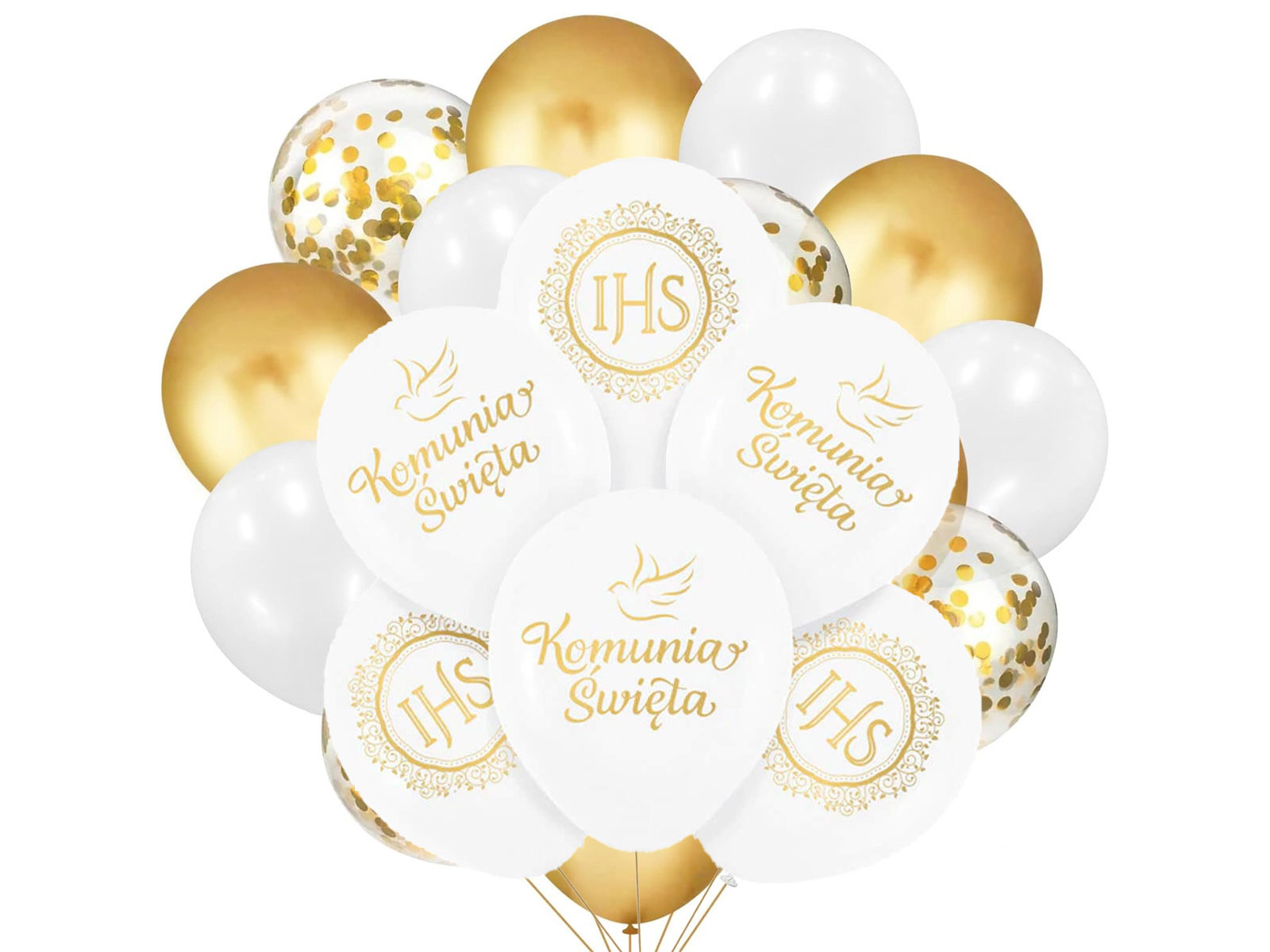 Zestaw balonów komunijnych biało-złoty - 32szt.