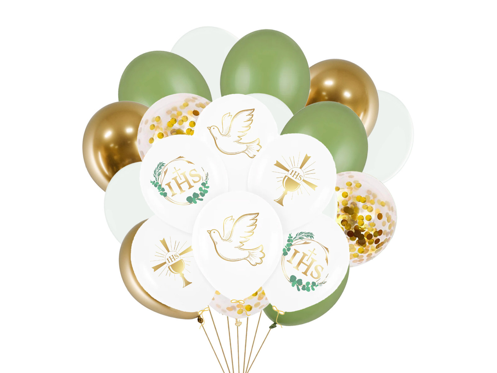 Zestaw balonów komunijnych zielono- złoty - 22 szt.