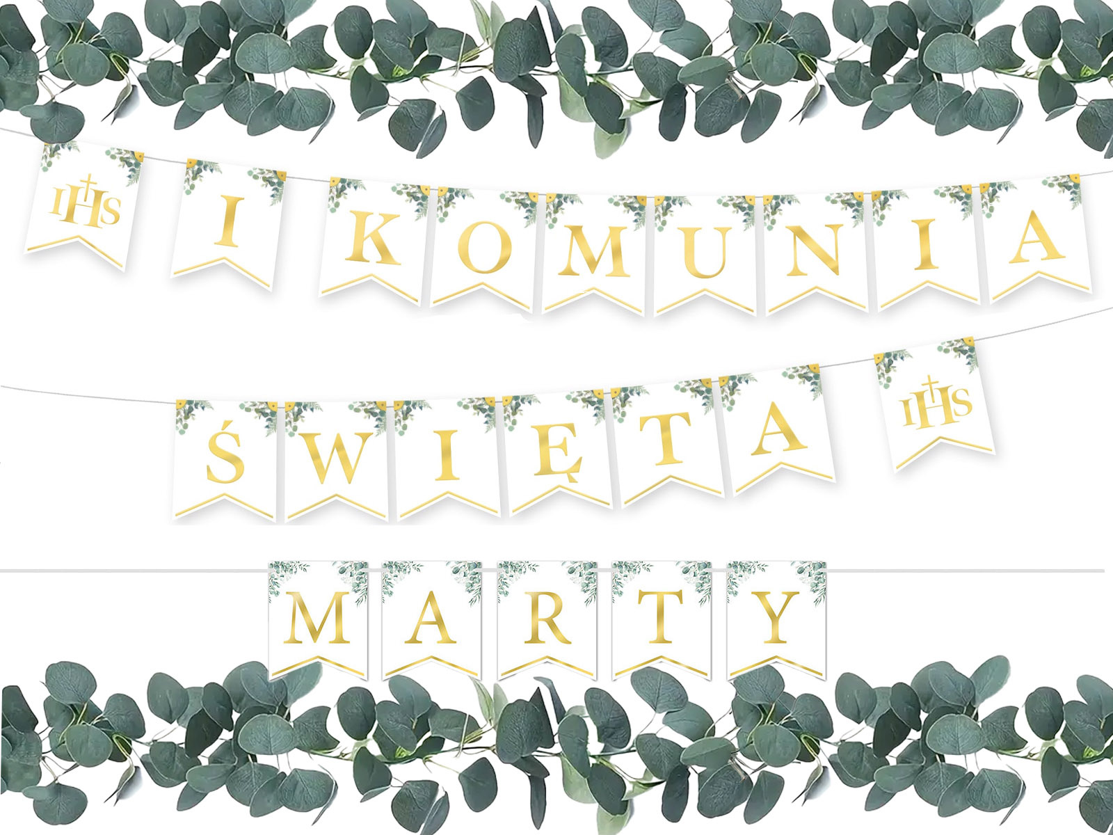 Baner I Komunia Święta oraz eukaliptus + imię - 1 szt.