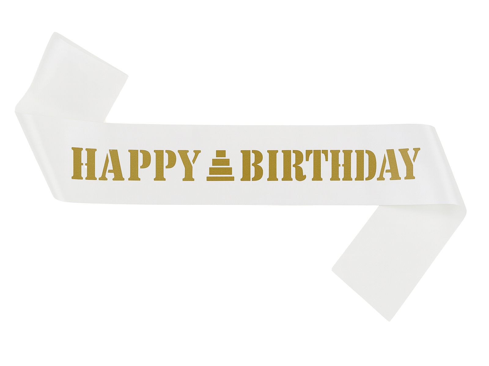 Szarfa urodzinowa Happy Birthday biała - 1 szt.