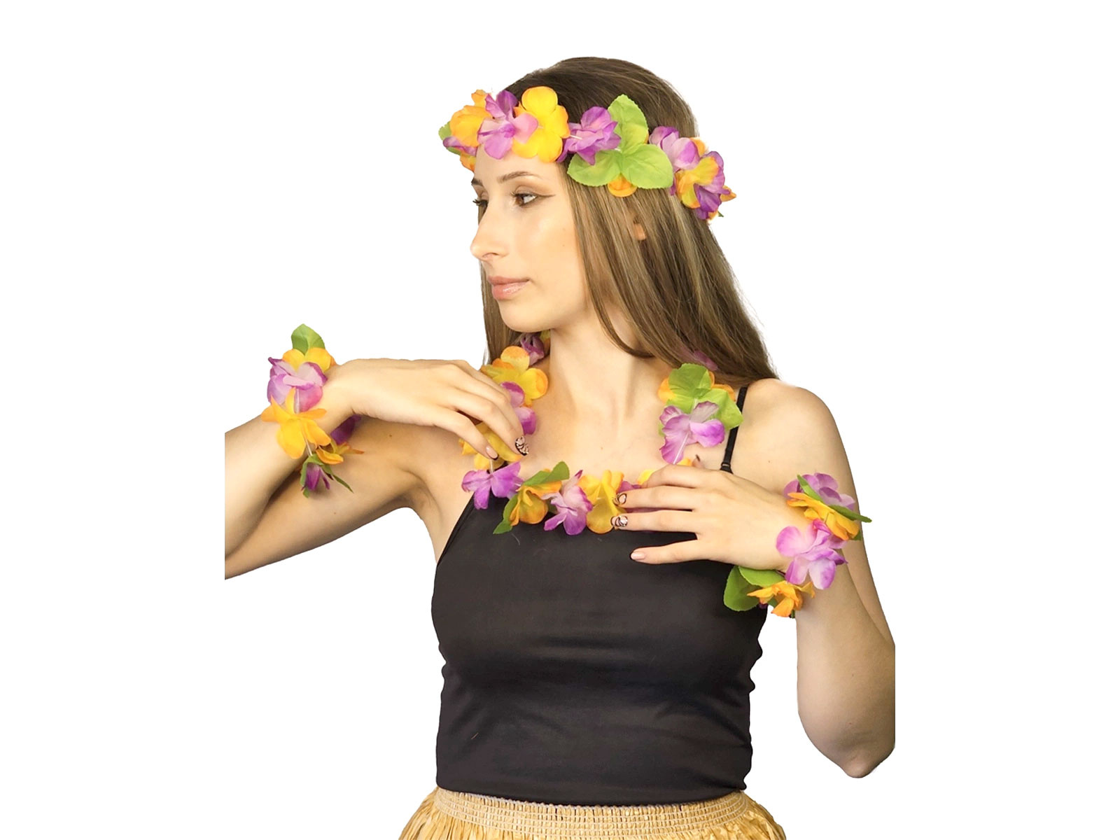 Zestaw hawajski żółto-fioletowy - 4 elementowy