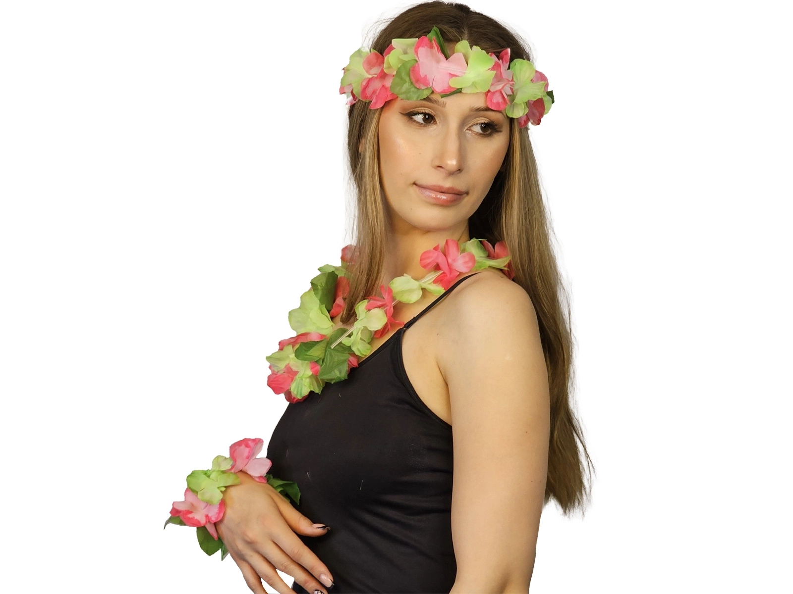 Zestaw hawajski zielono-różowy - 4 elementowy