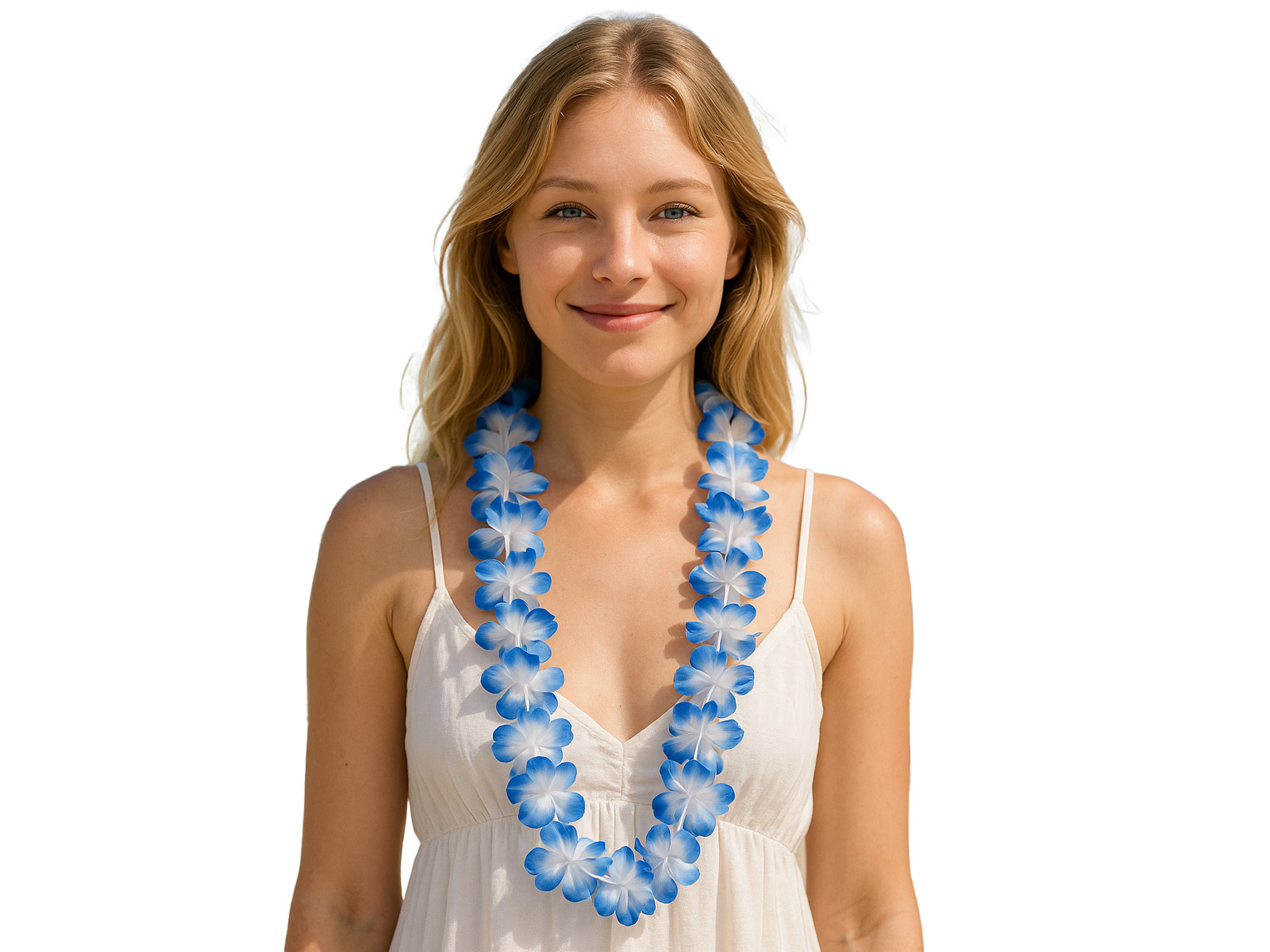 Naszyjnik hawajski niebiesko-biały - 90 cm - 1 szt.