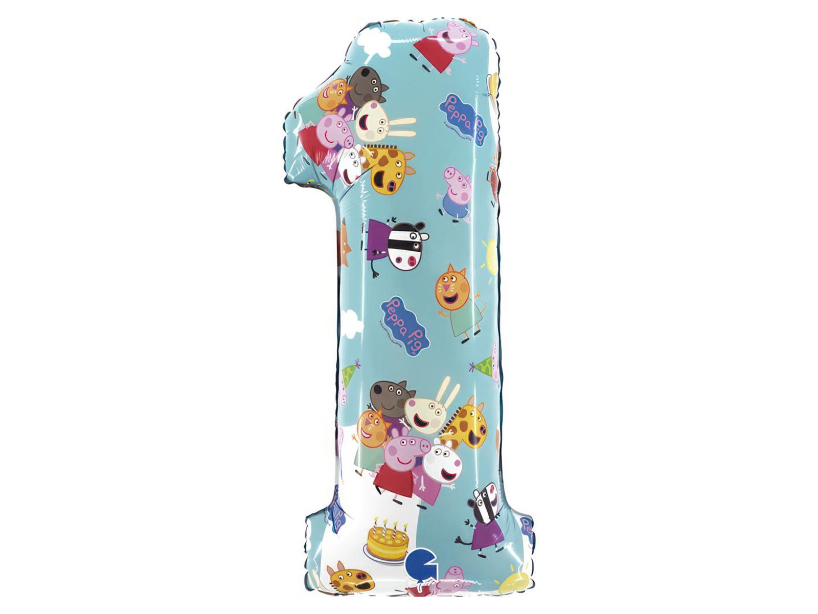 Balon foliowy cyfra 1 Świnka Peppa - 33x71 cm - 1 szt.