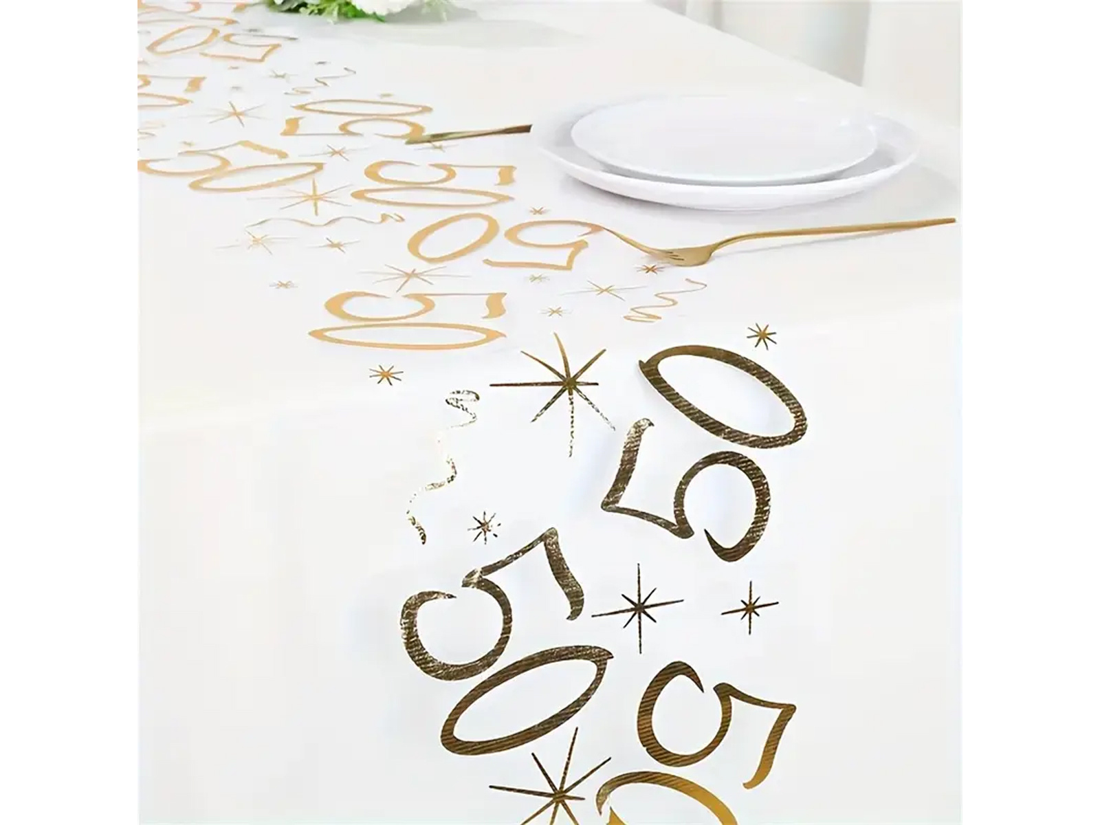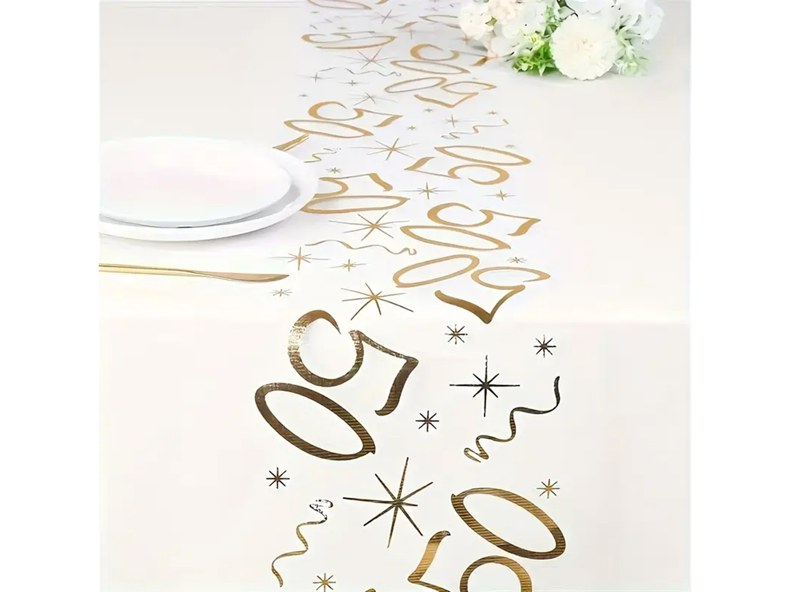 Dekoracja bieżnik na stół z nadrukiem na 50 urodziny - 28 cm x 5 m - 1 szt.