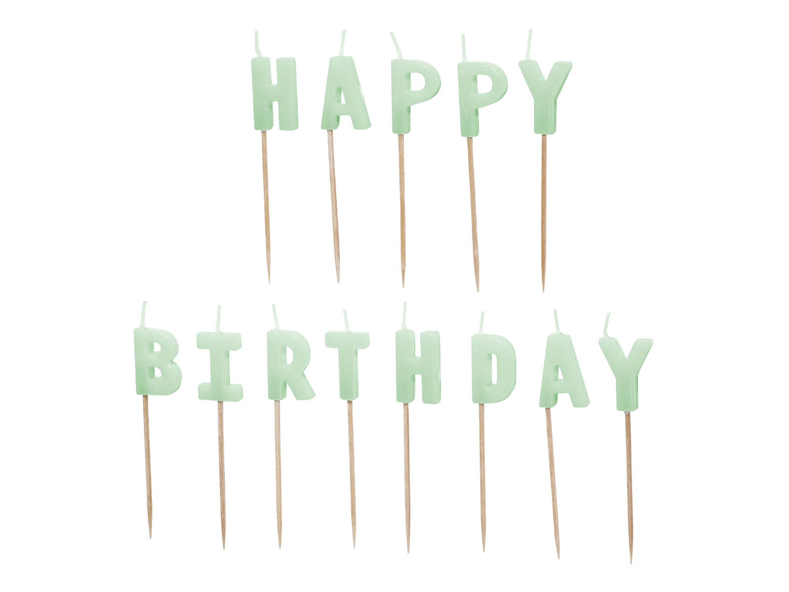 Świeczki pikery napis Happy Birthday - zielone - 1 op.