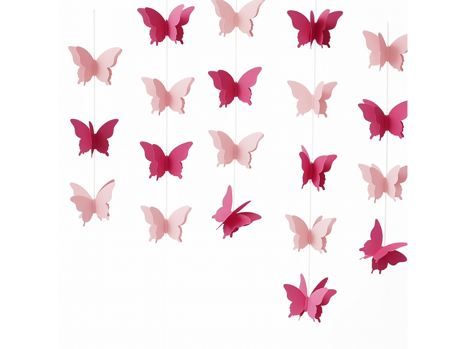 Dekoracja wisząca Motylki różowe 3D - 3 m - 1 szt.