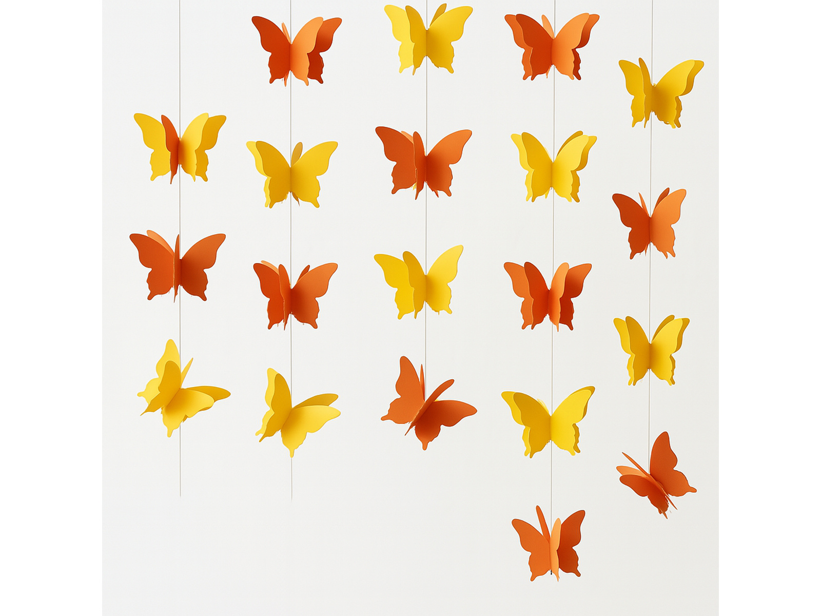 Dekoracja wisząca Motylki pomarańczowo-żółte 3D - 3 m - 1 szt.