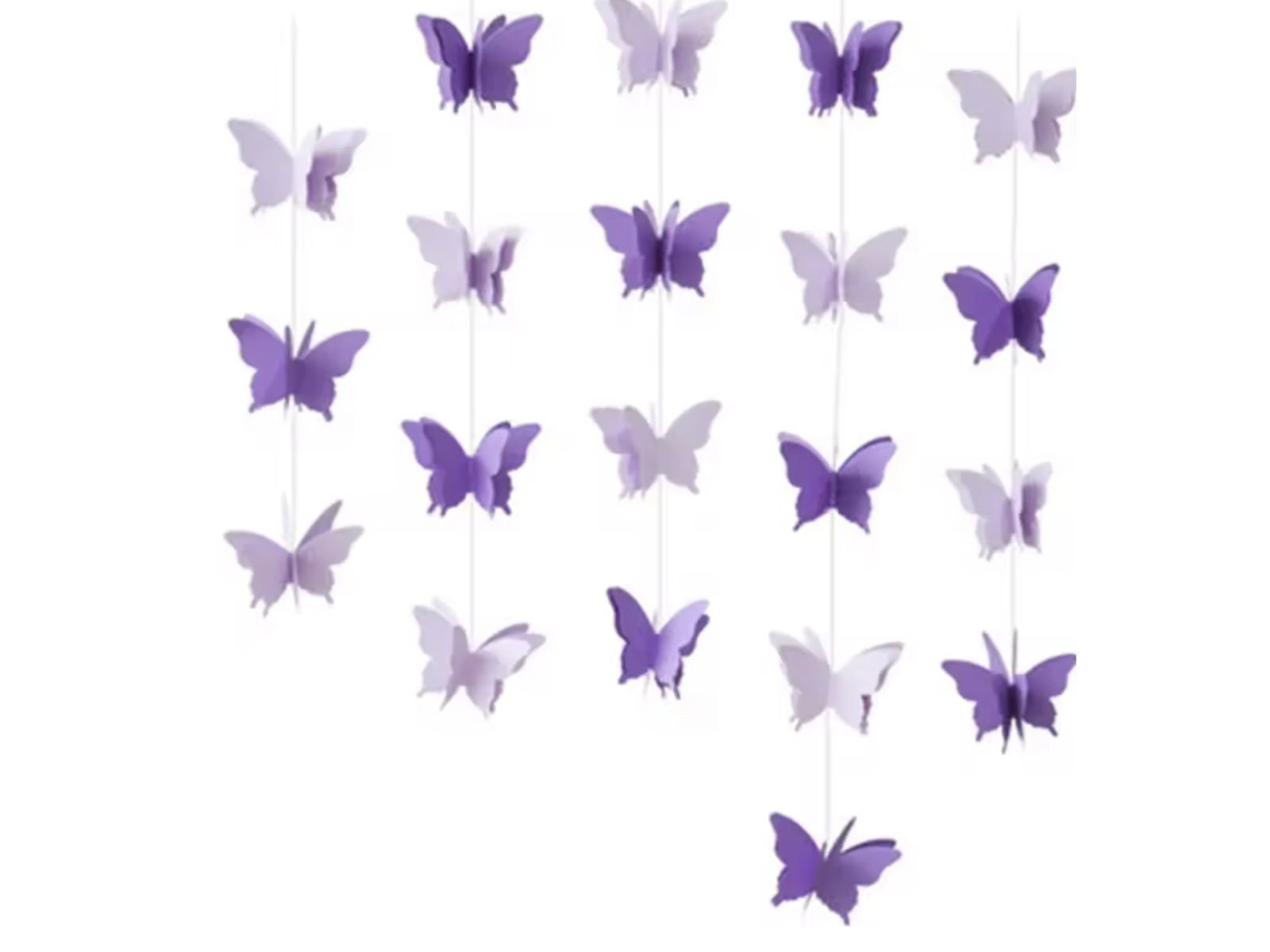 Dekoracja wisząca Motylki fioletowe 3D - 3 m - 1 szt.