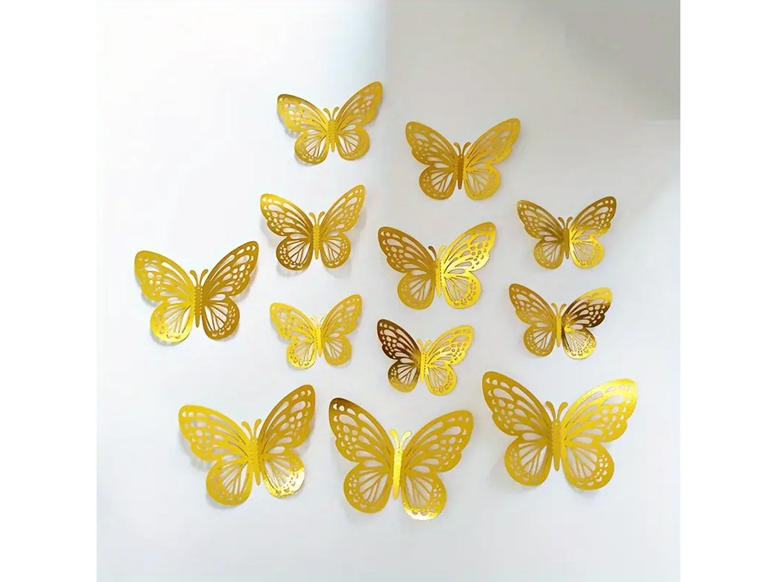 Dekoracja lustrzana Motyle złote 2D - 12 szt.