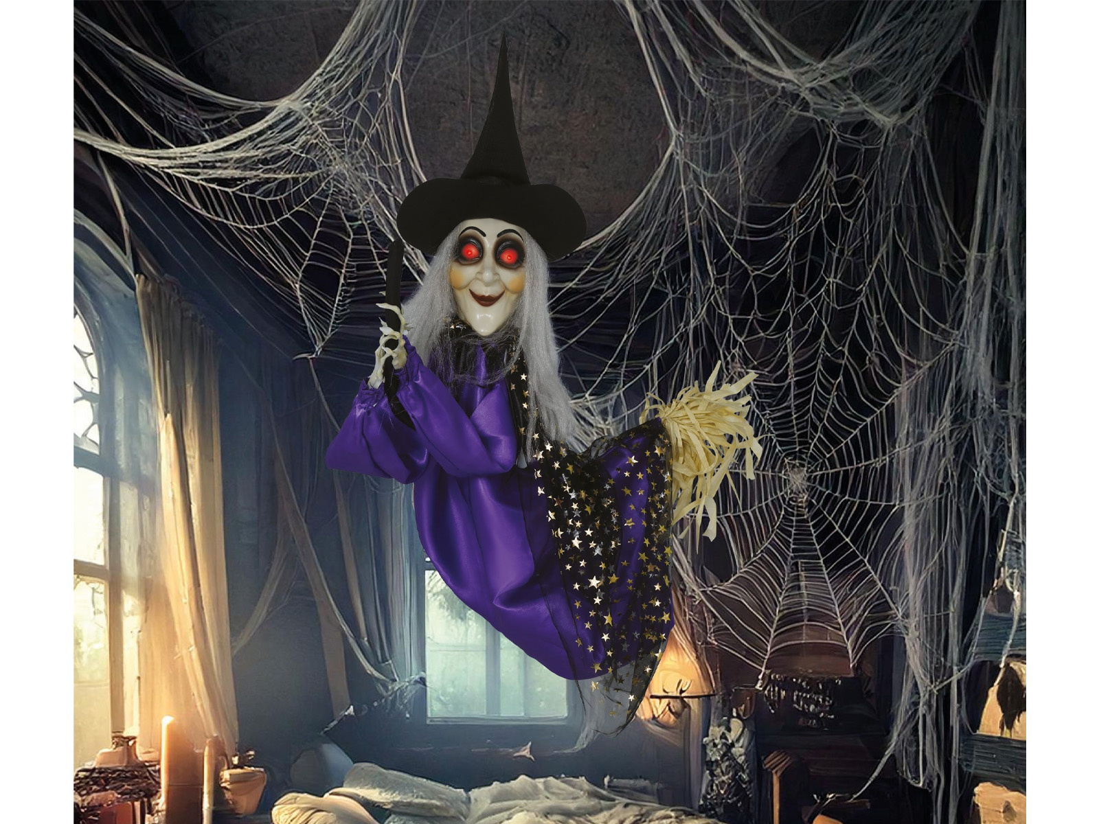 Dekoracja wisząca Czarownica na miotle - 75 cm - 1 szt.