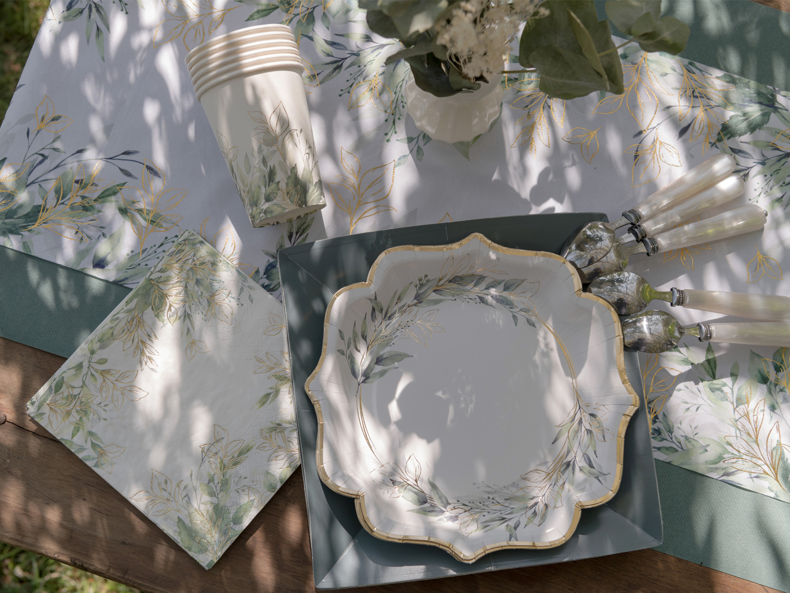 Kubeczki papierowe z zielonymi listkami - 270 ml - 10 szt.